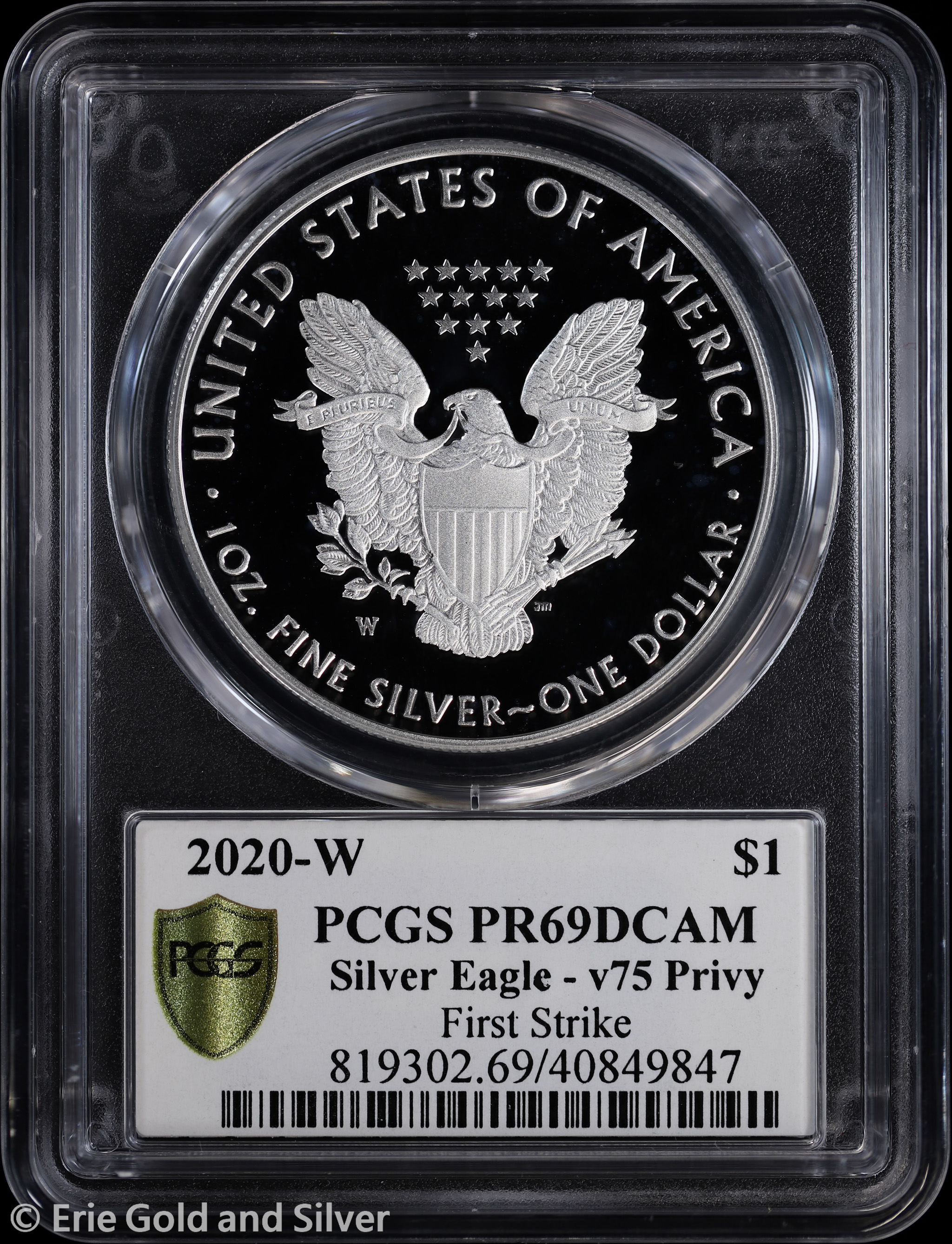 2020-W Proof American Silver Eagle PCGS PR 69 DCAM | v75 Privy, First Strike
