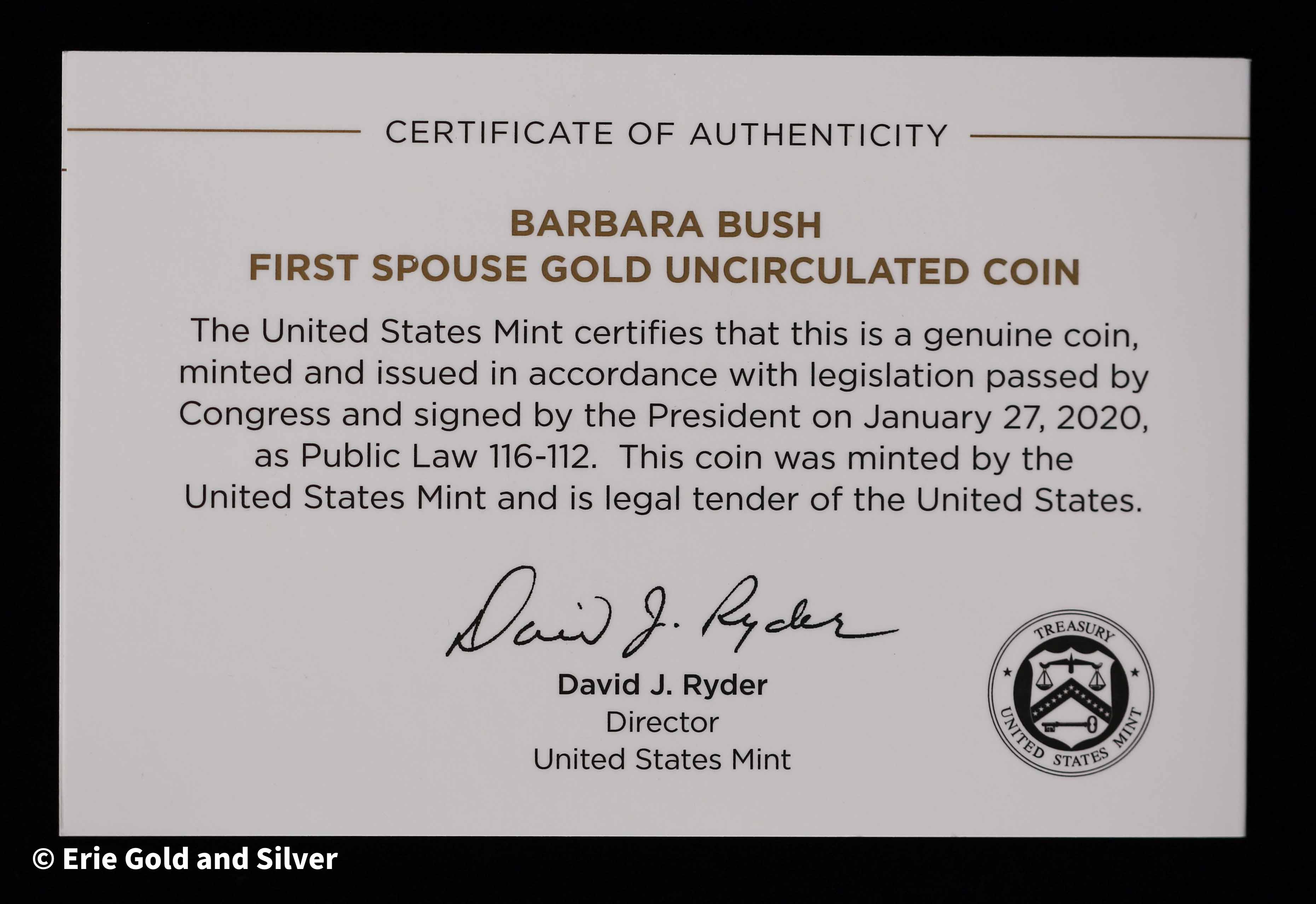 2020-W $10 Barbara Bush 1/2 oz Gold Coin in OGP