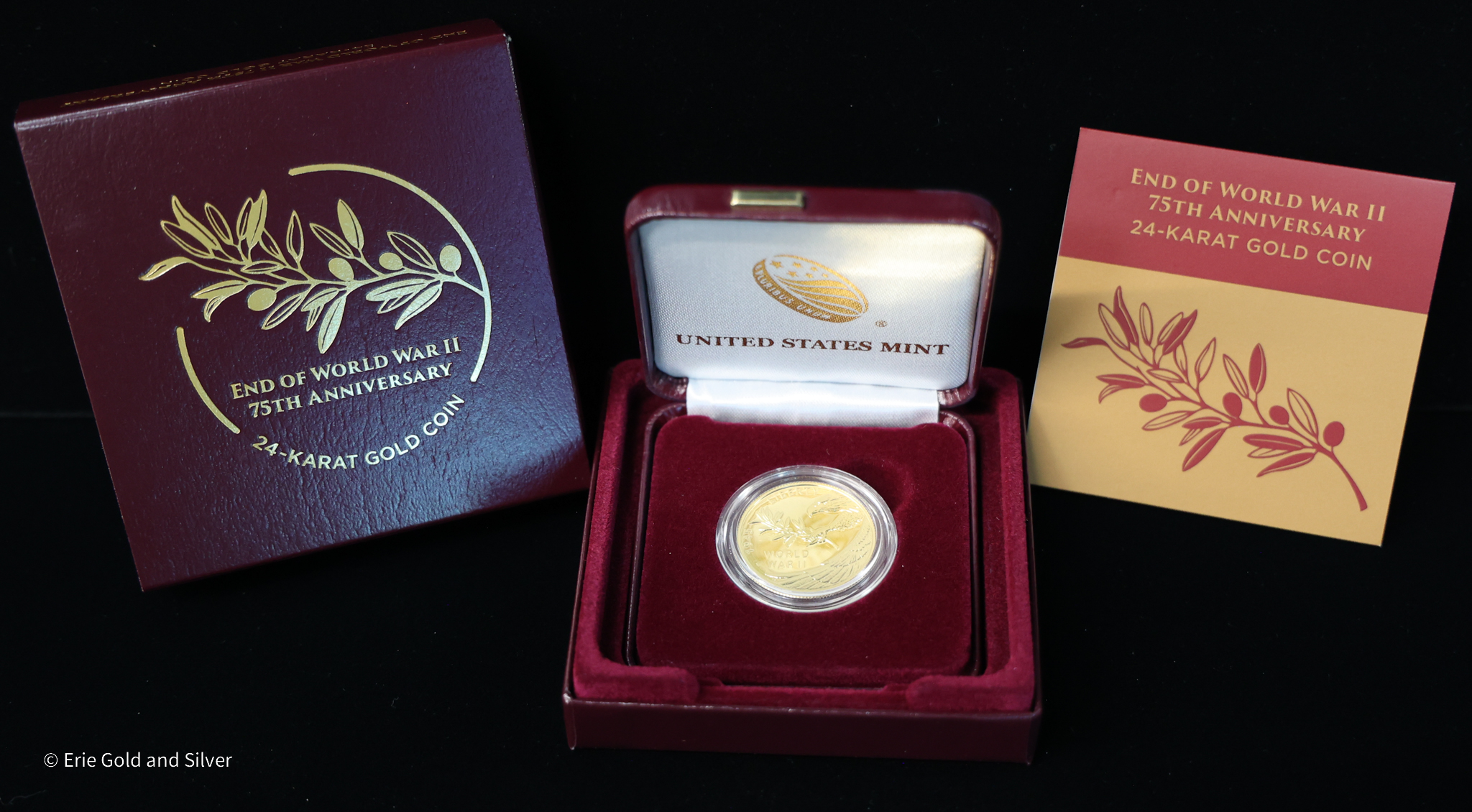 The 2020 End of World War II 75th Anniversary Gold Coin honors one of the most pivotal moments in human history with exceptional artistry and craftsmanship. Struck by the United States Mint in 1/2 troy ounce of .9999 fine gold, this limited-edition proof coin commemorates the 75th anniversary of the Allied victory and the return of peace in 1945.