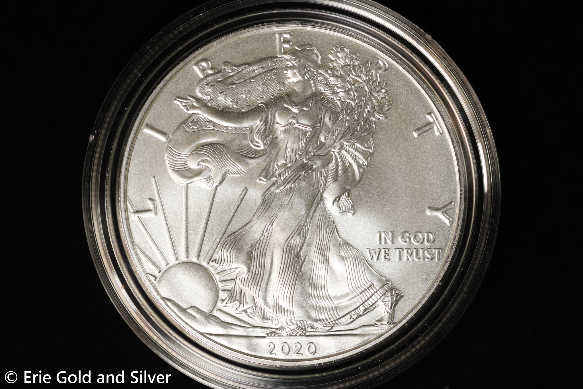 This 2020 Burnished American Silver Eagle was struck at the West Point Mint and bears the "W" mint mark. It contains one troy ounce of .999 fine silver and was produced using a special burnished (uncirculated) finish, giving the coin a soft, matte-like appearance that distinguishes it from standard bullion and proof issues.
