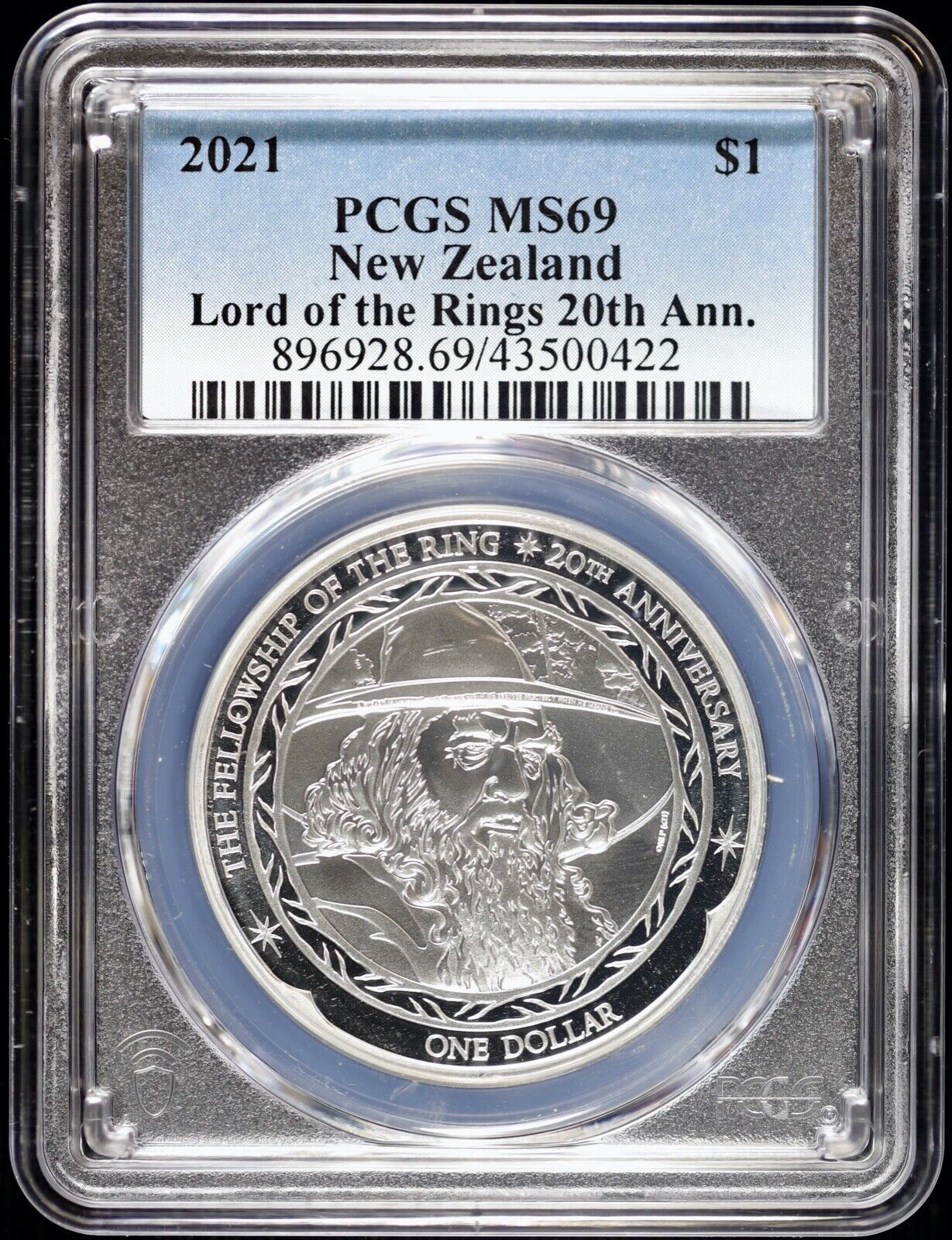 2021 $1 New Zealand Gandalf PCGS MS 69 1 oz Silver Lord of Rings 20th Anniversary