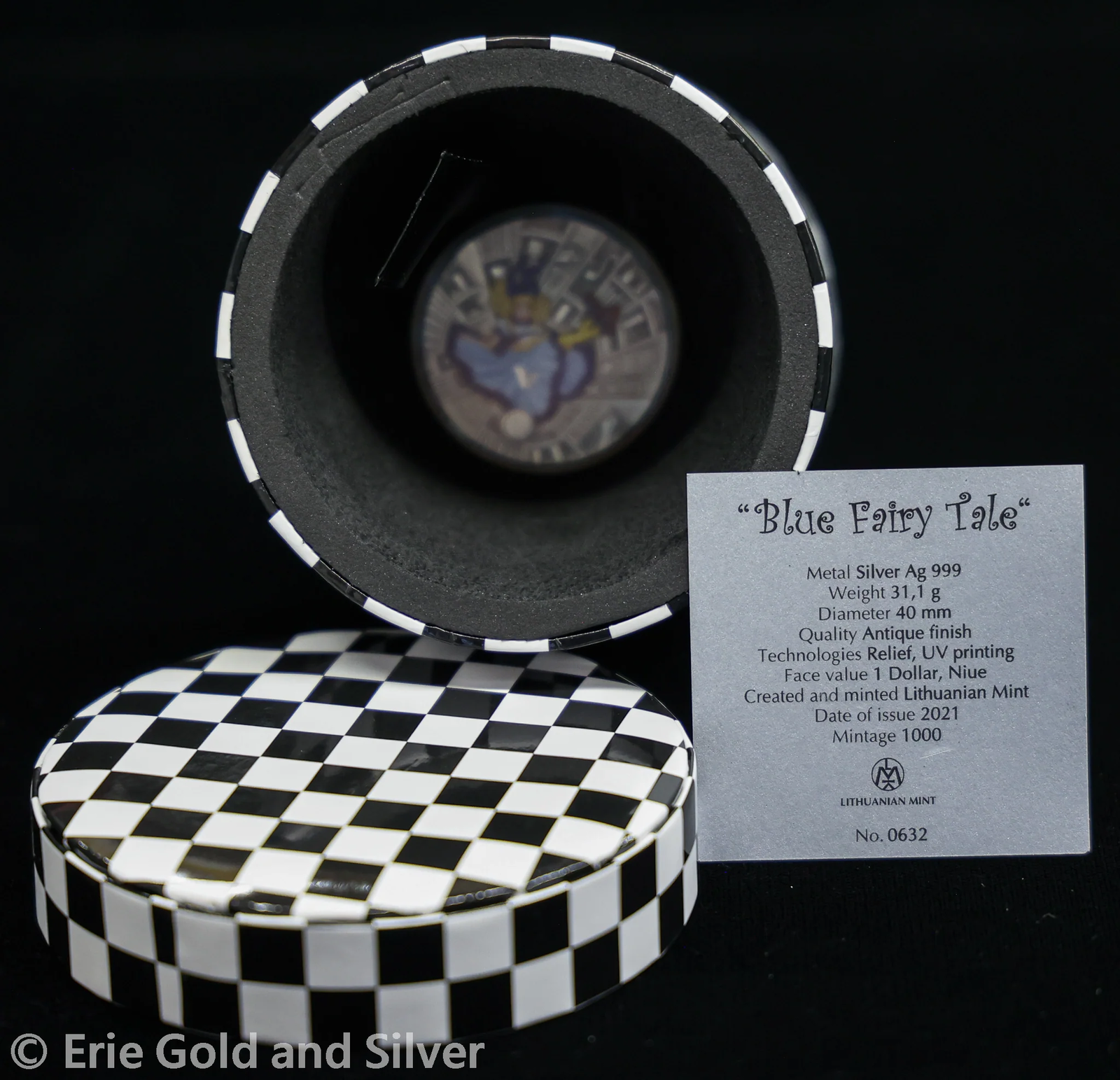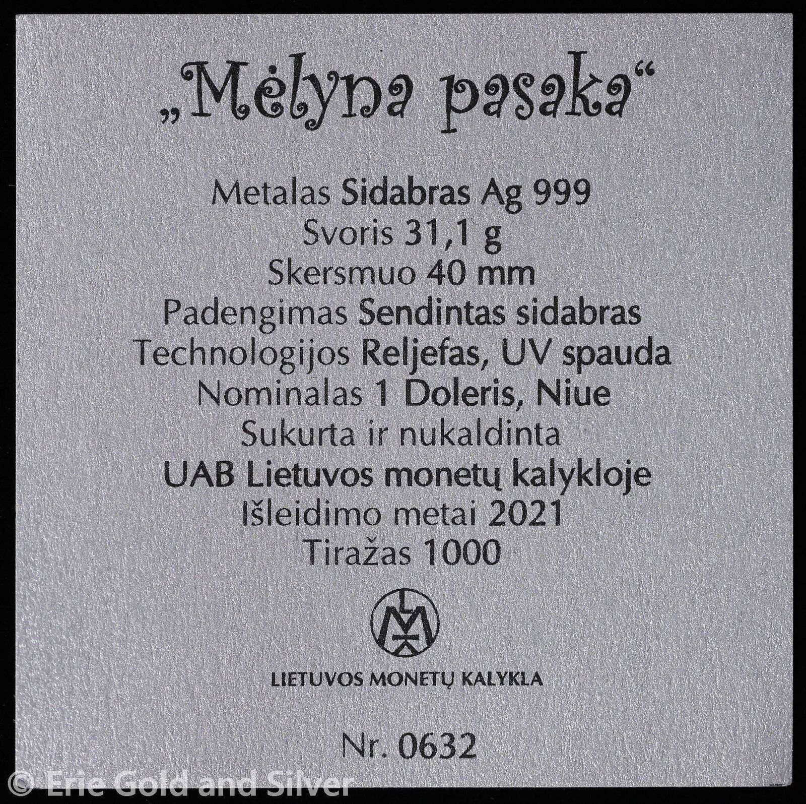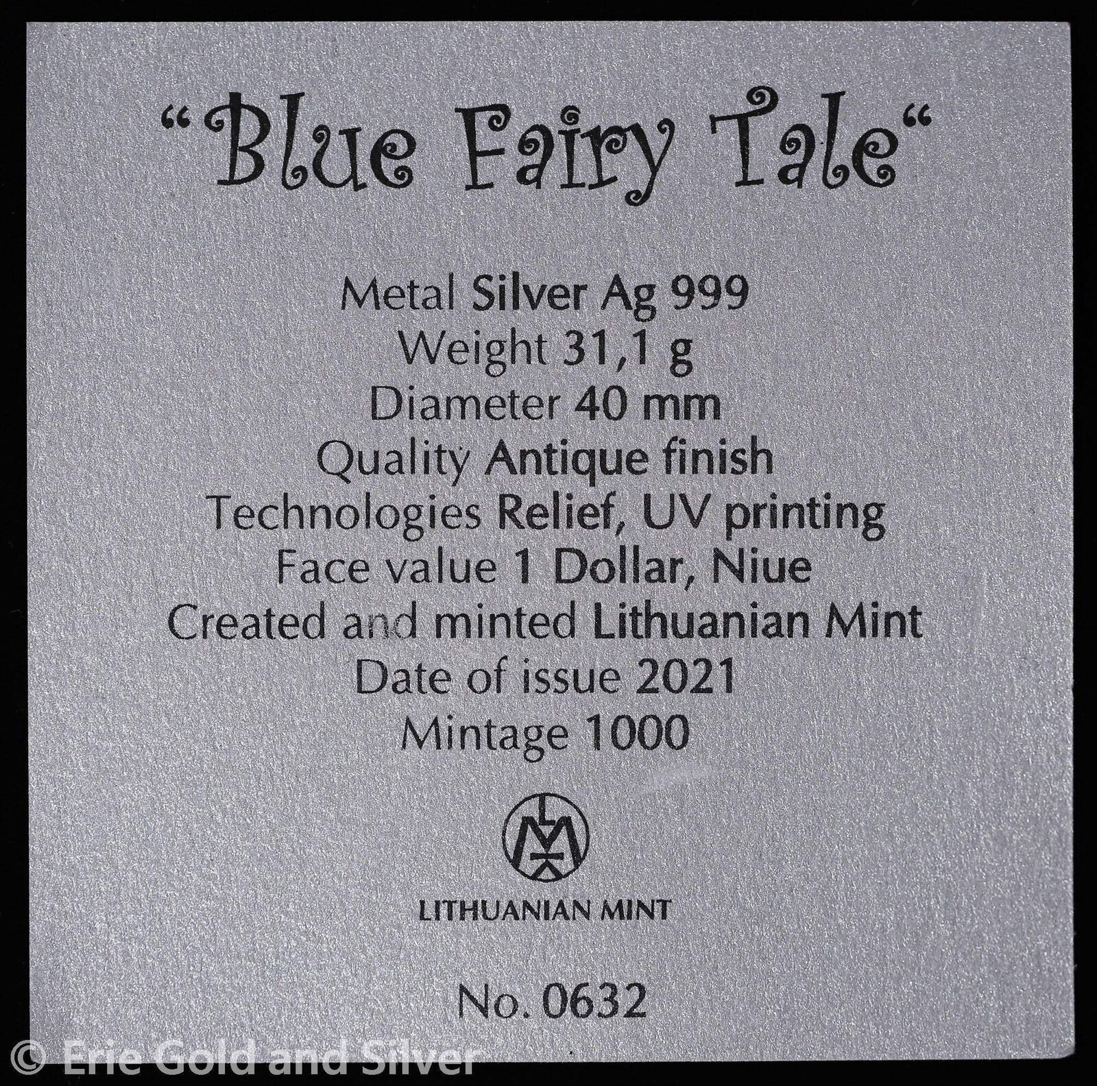 2021 $1 Niue 1 oz Silver Lithuanian Mint Blue Fairy Tale Box & COA