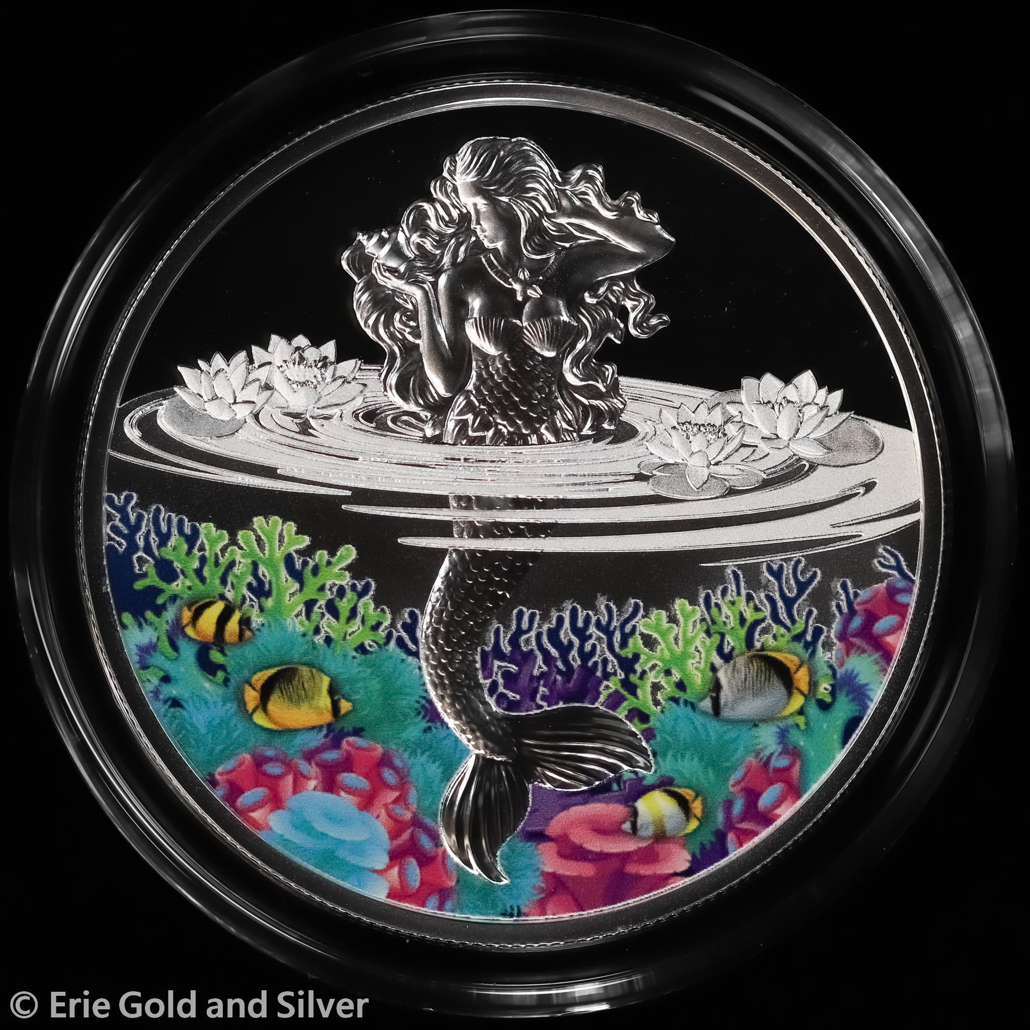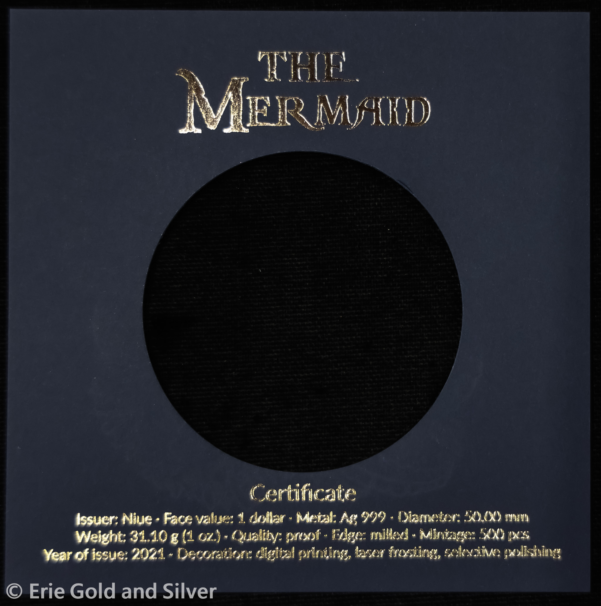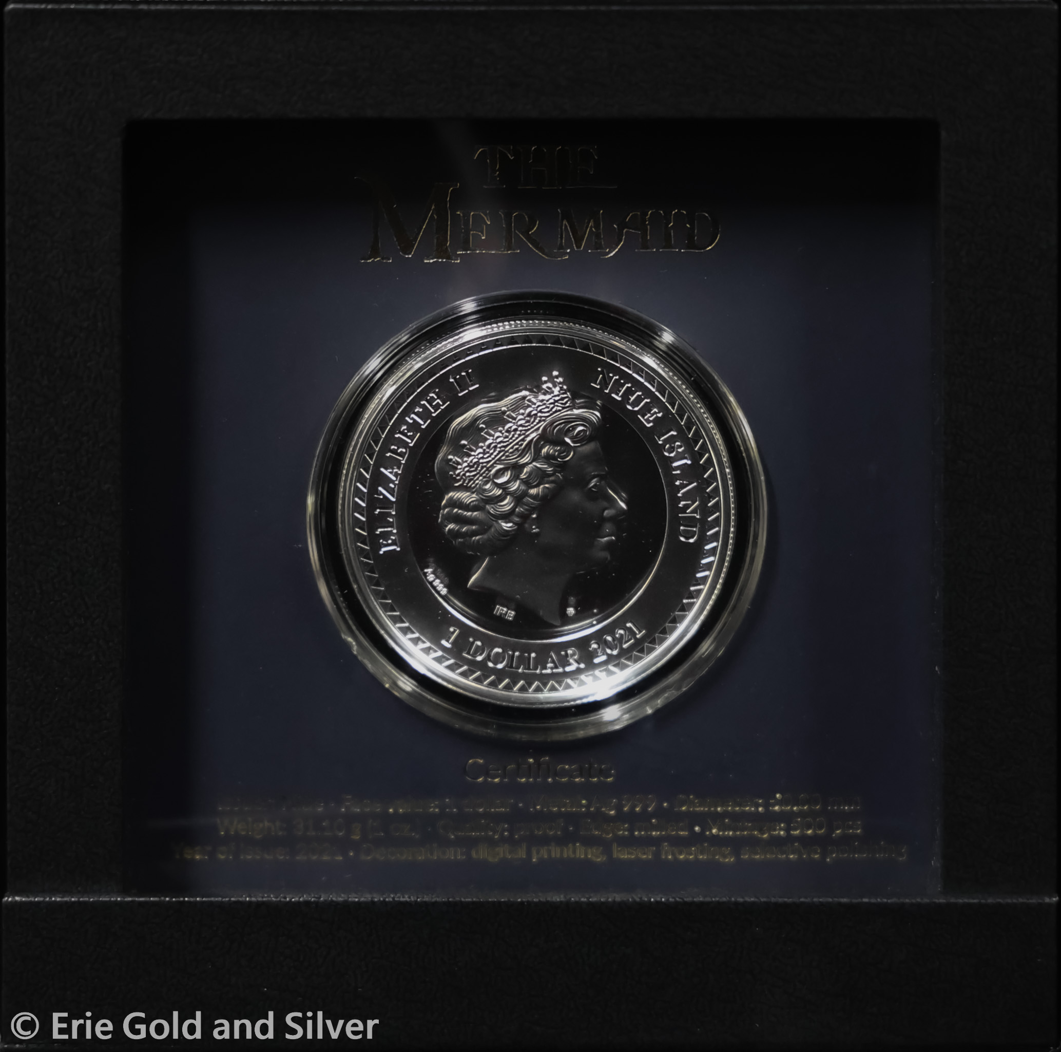2021 $1 Niue Mermaid 1 oz Silver Colorized Proof Coin in OGP