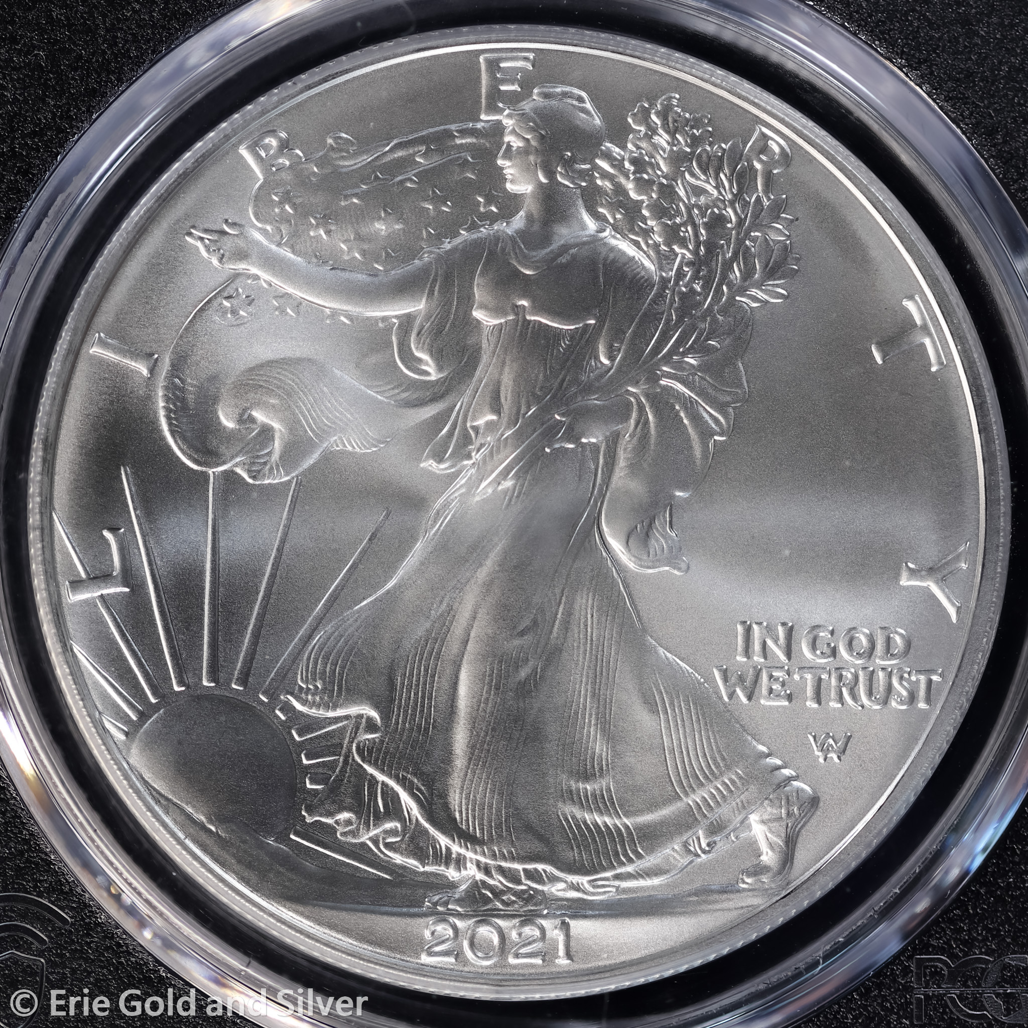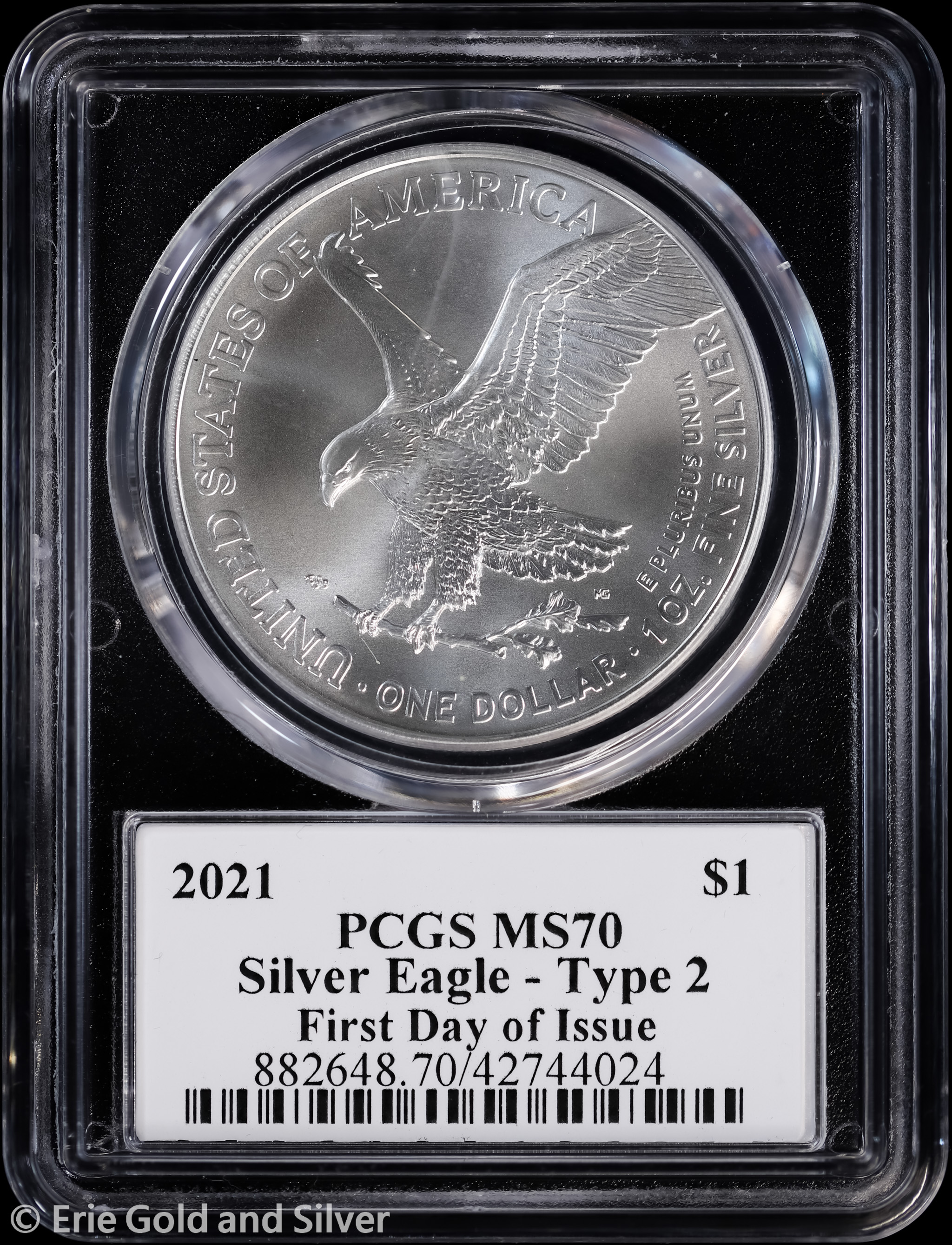 For sale is a 2021 T-2 American Silver Eagle. Certified / graded by PCGS at MS 70.