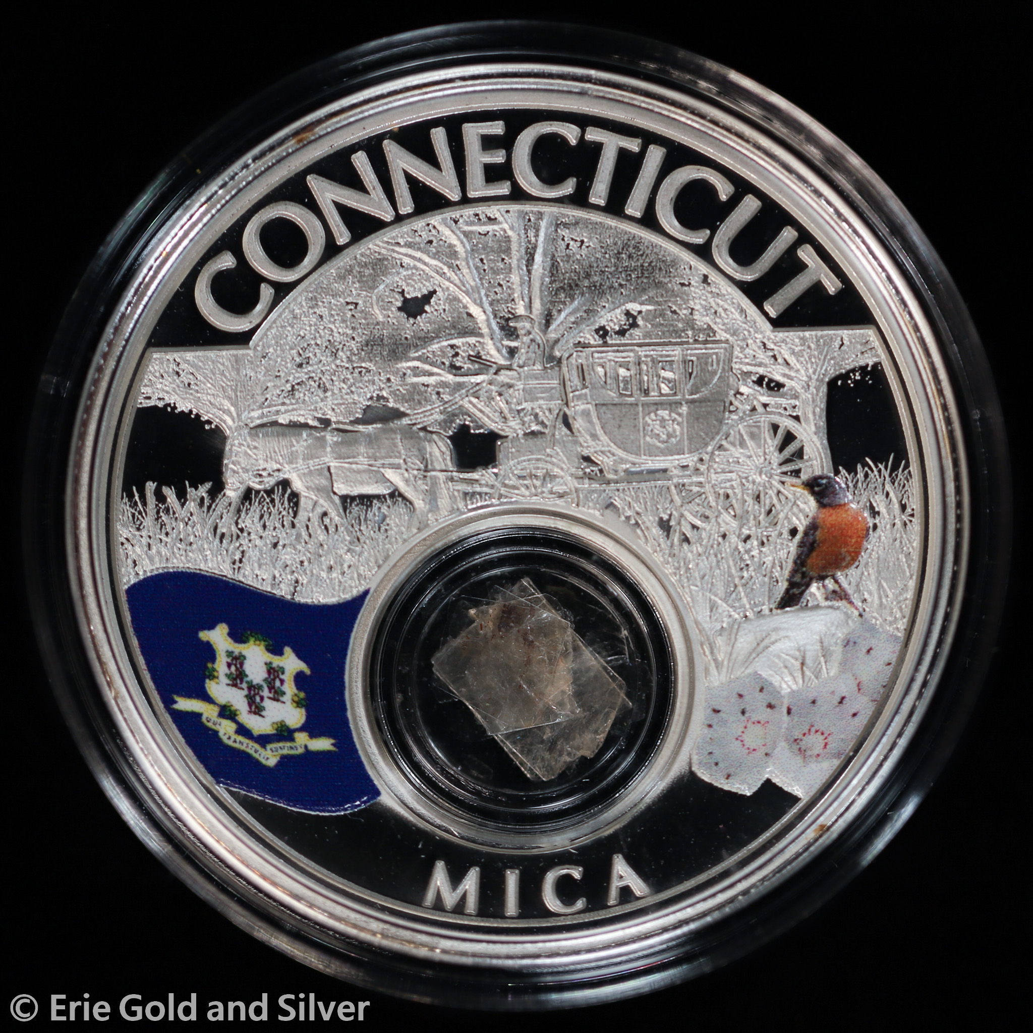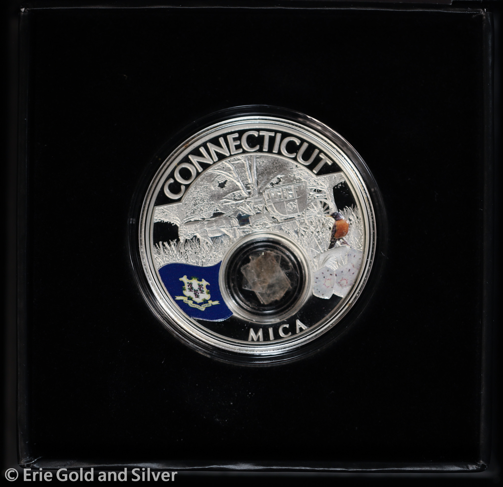 For sale is a 2021 $10 Native American Mint Connecticut 1 oz Silver Proof Coin w/ Mica in OGP.