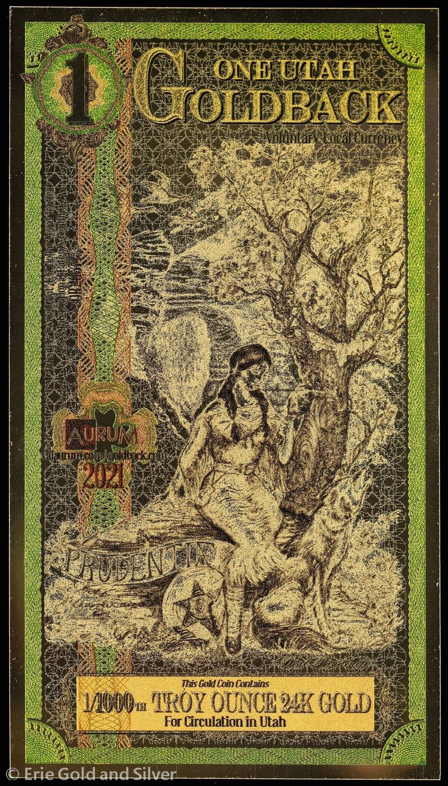 2021 1GB 1/1000oz 24 Karat Gold 1 Utah Goldback Goldbacks Single