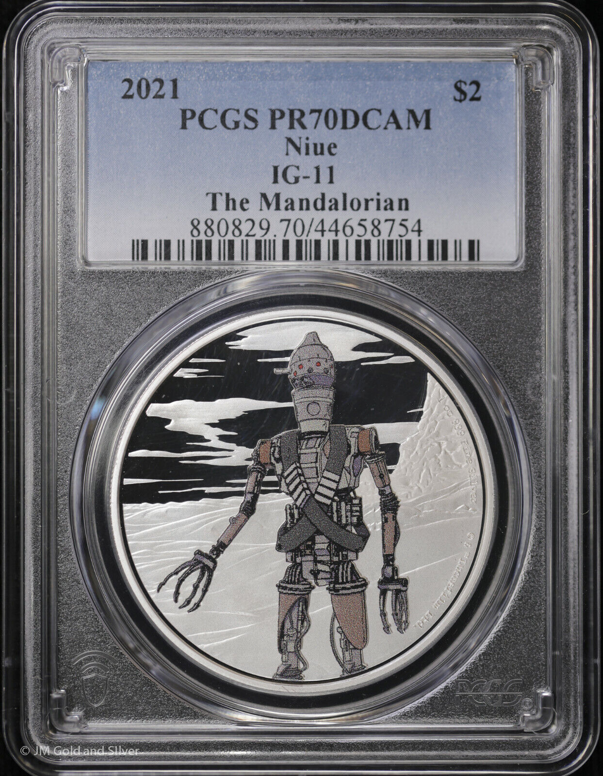 2021 $2 Niue 1 oz Proof Silver Mandalorian's IG-11 Colorized PCGS PR 70 DCAM