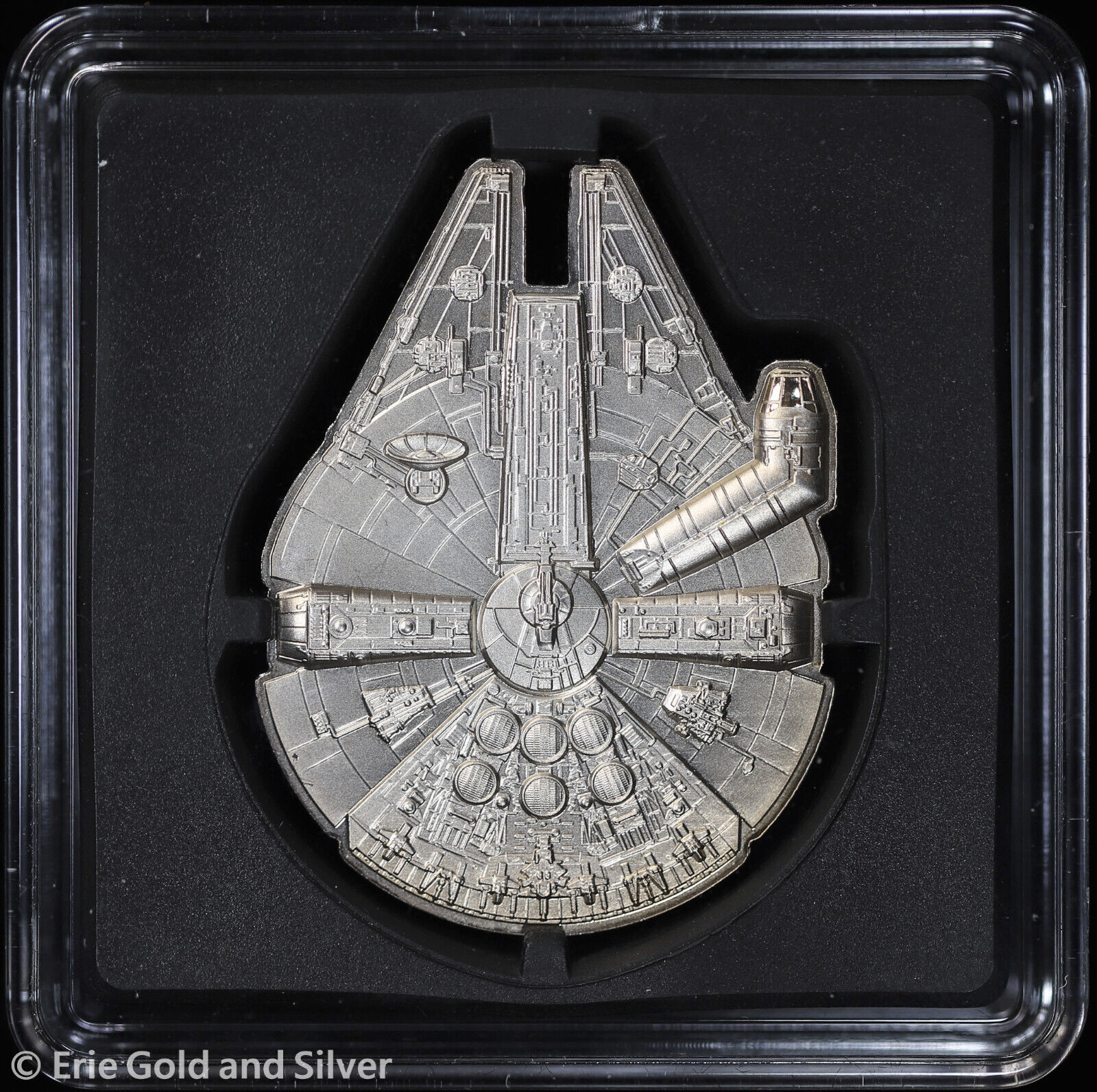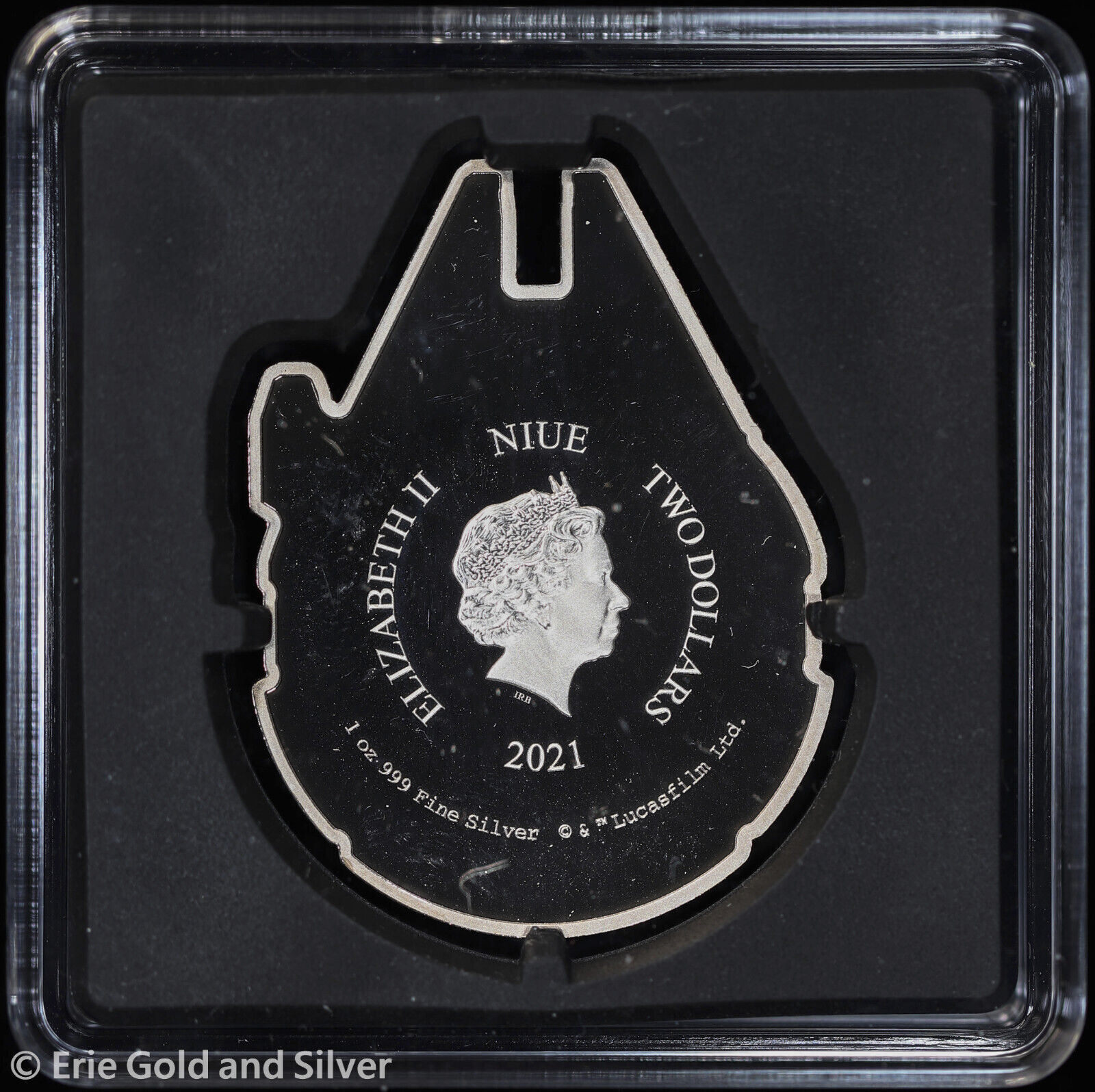 For sale is a 2021 $2 Niue Star Wars Millennium Falcon 1 oz Silver Coin in OGP. View pictures for details and condition. There are multiple available, so the coin you receive may not be the exact coin pictured, however it will be similar quality.