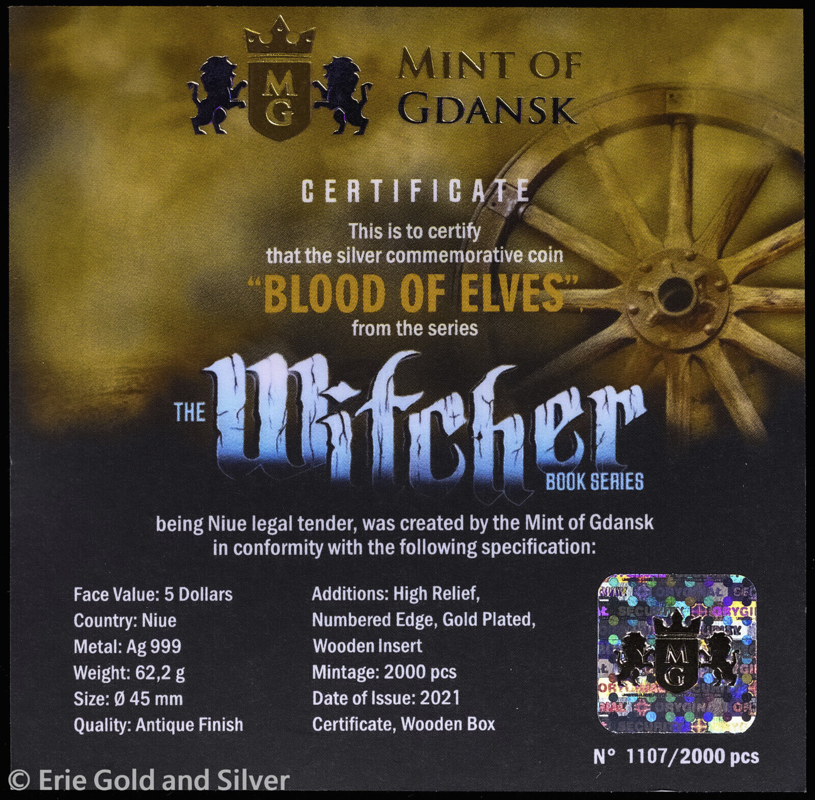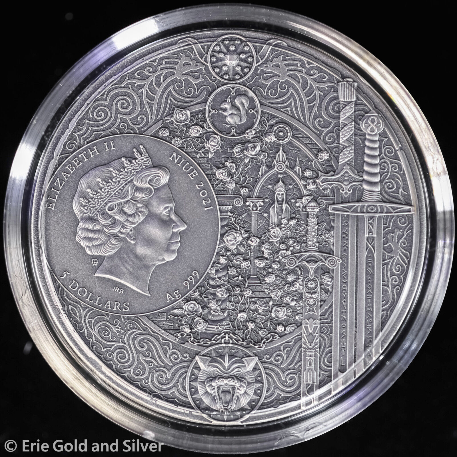2021 $5 Niue The Witcher Blood of Elves 2 oz Silver Antiqued Coin in OGP