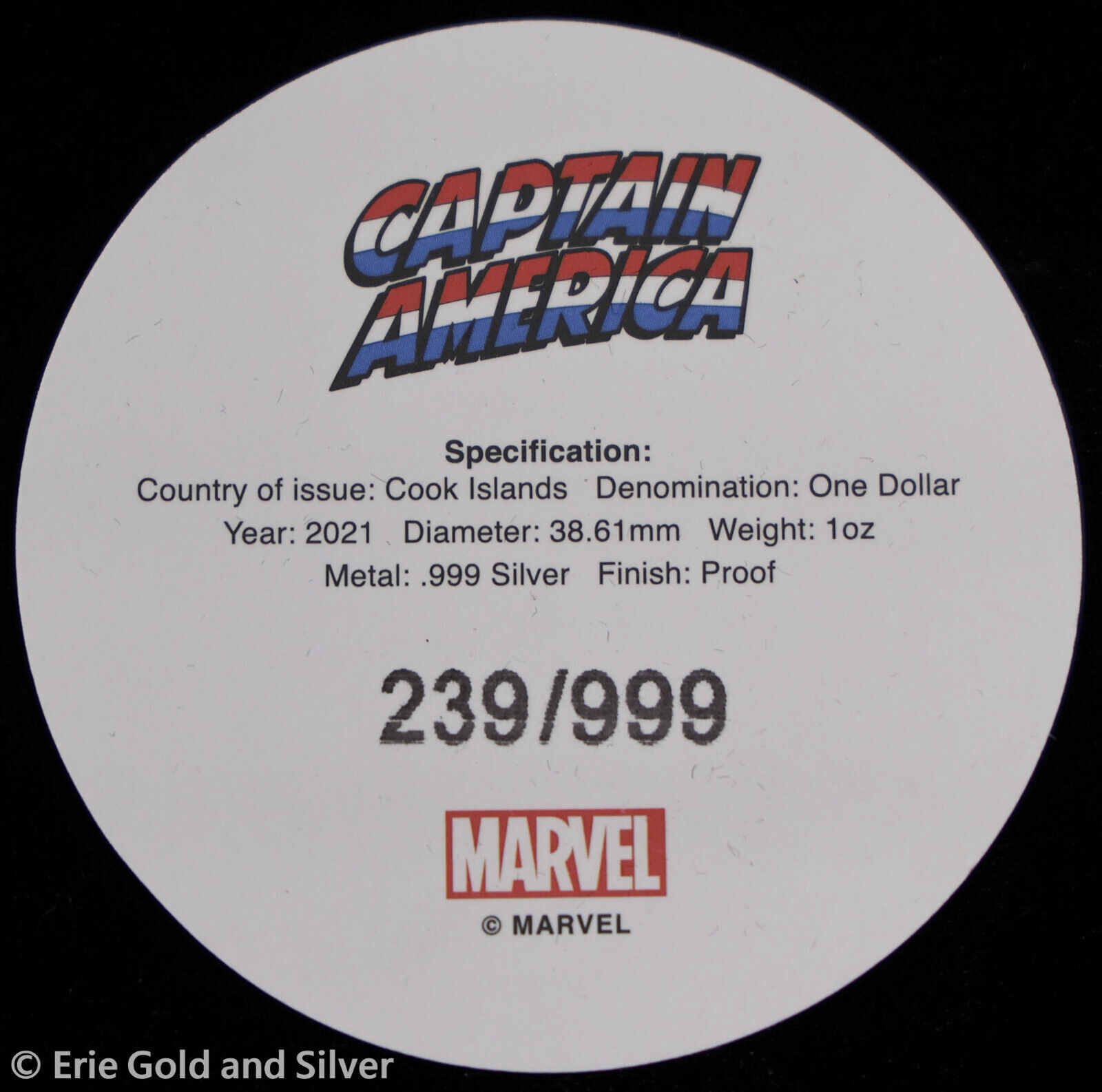 For sale is a 2021 Cook Islands Captain America 1 oz Silver Proof Colorized Coin in OGP. View pictures for details and condition. There are multiple available, so the item you receive may not be the exact item pictured. However, it will be similar quality. Feel free to contact us with any questions.
