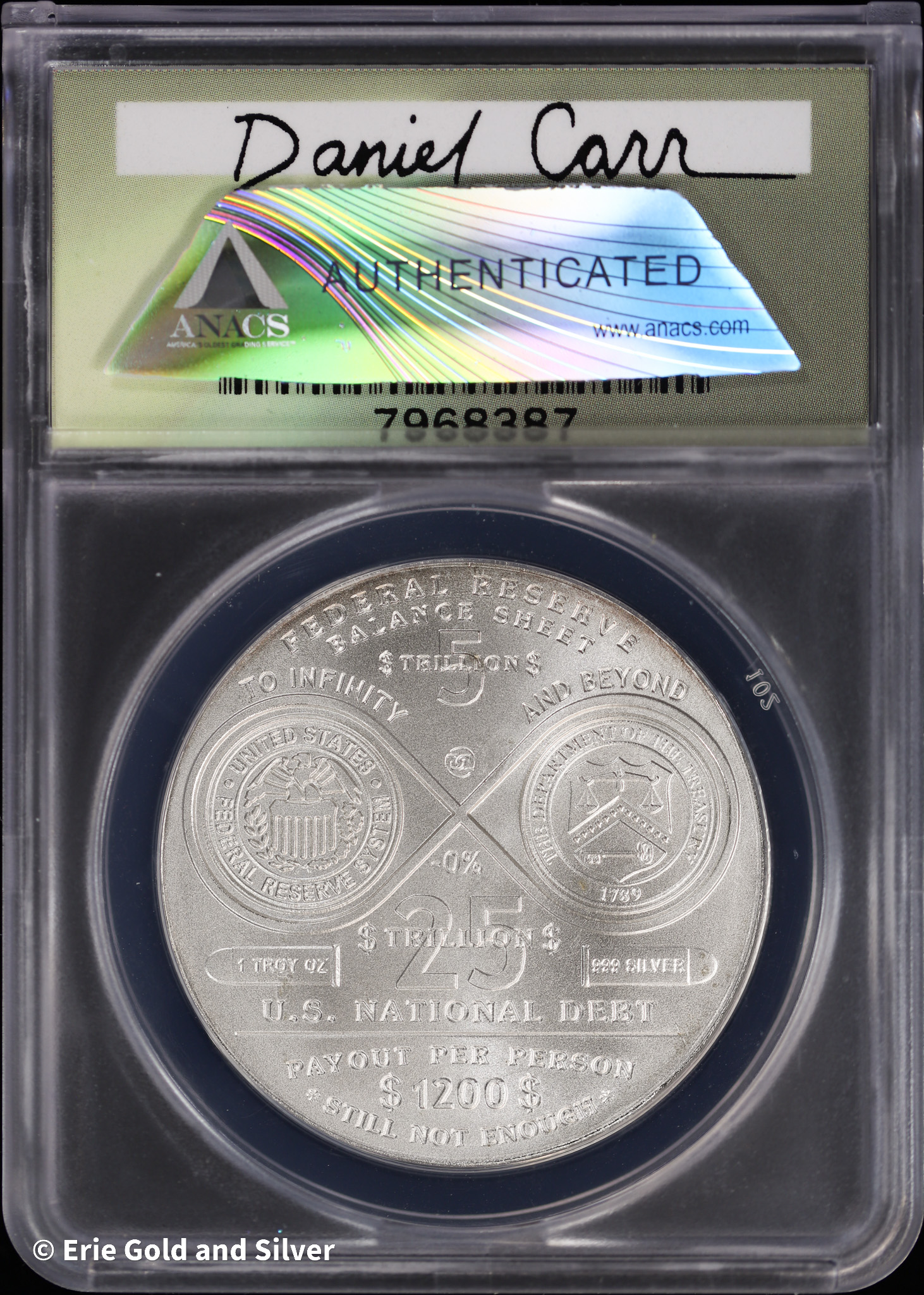 2021 Dan Carr Moonlight Mint Covid-19 Outbreak 1 oz Silver Medal ANACS MS 69