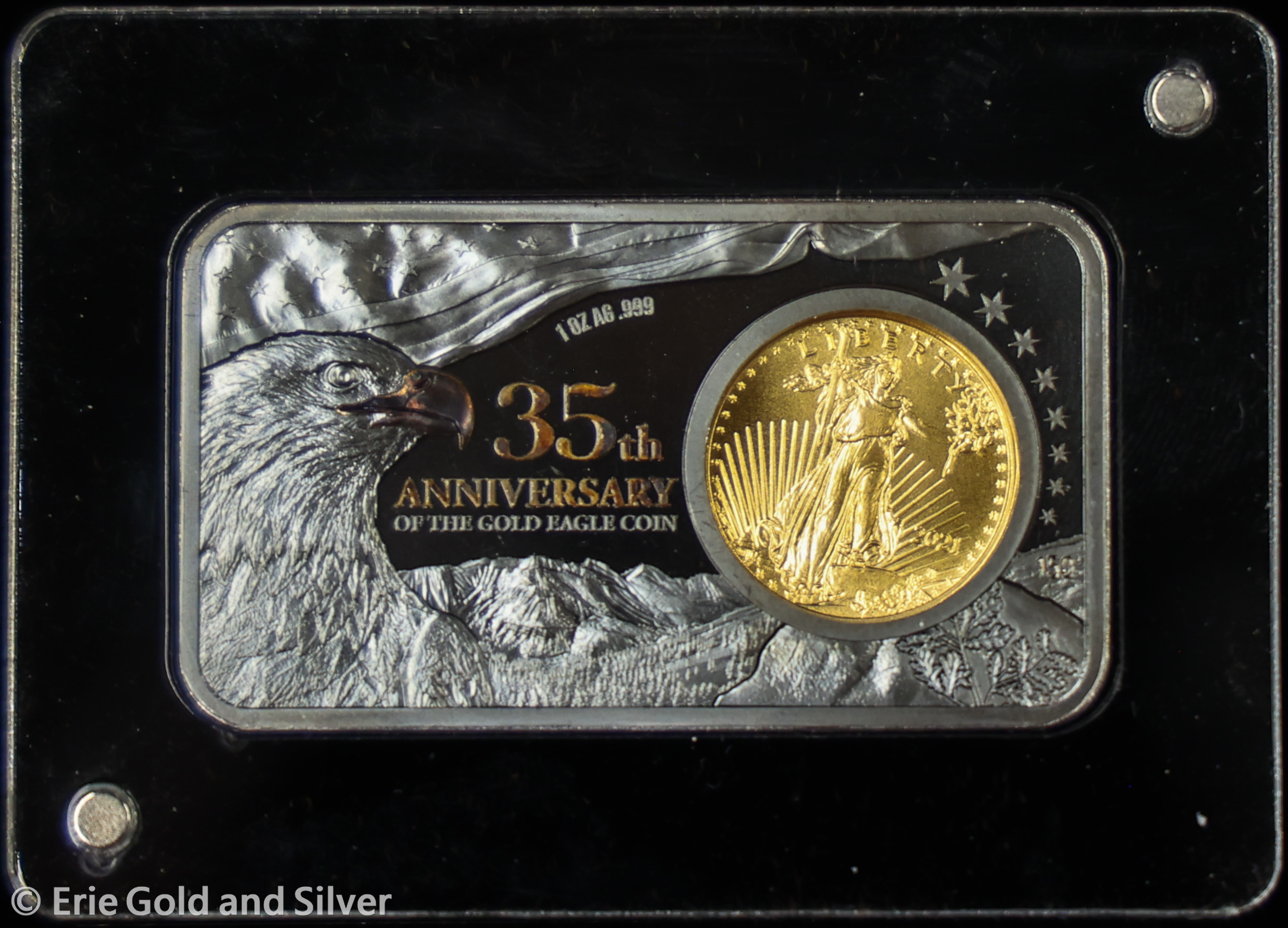 2021 Gold Eagle 35th Anniversary 1 oz Silver Bar with 1/10 oz Gold Coin in OGP C