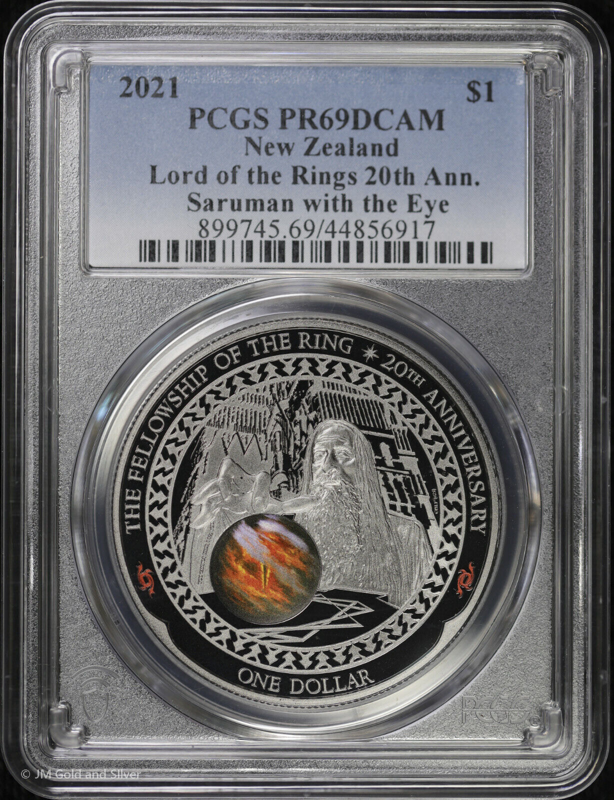 2021 New Zealand $1 Proof Silver Saruman w/ Eye Lord of Rings 20th PCGS PR69DCAM