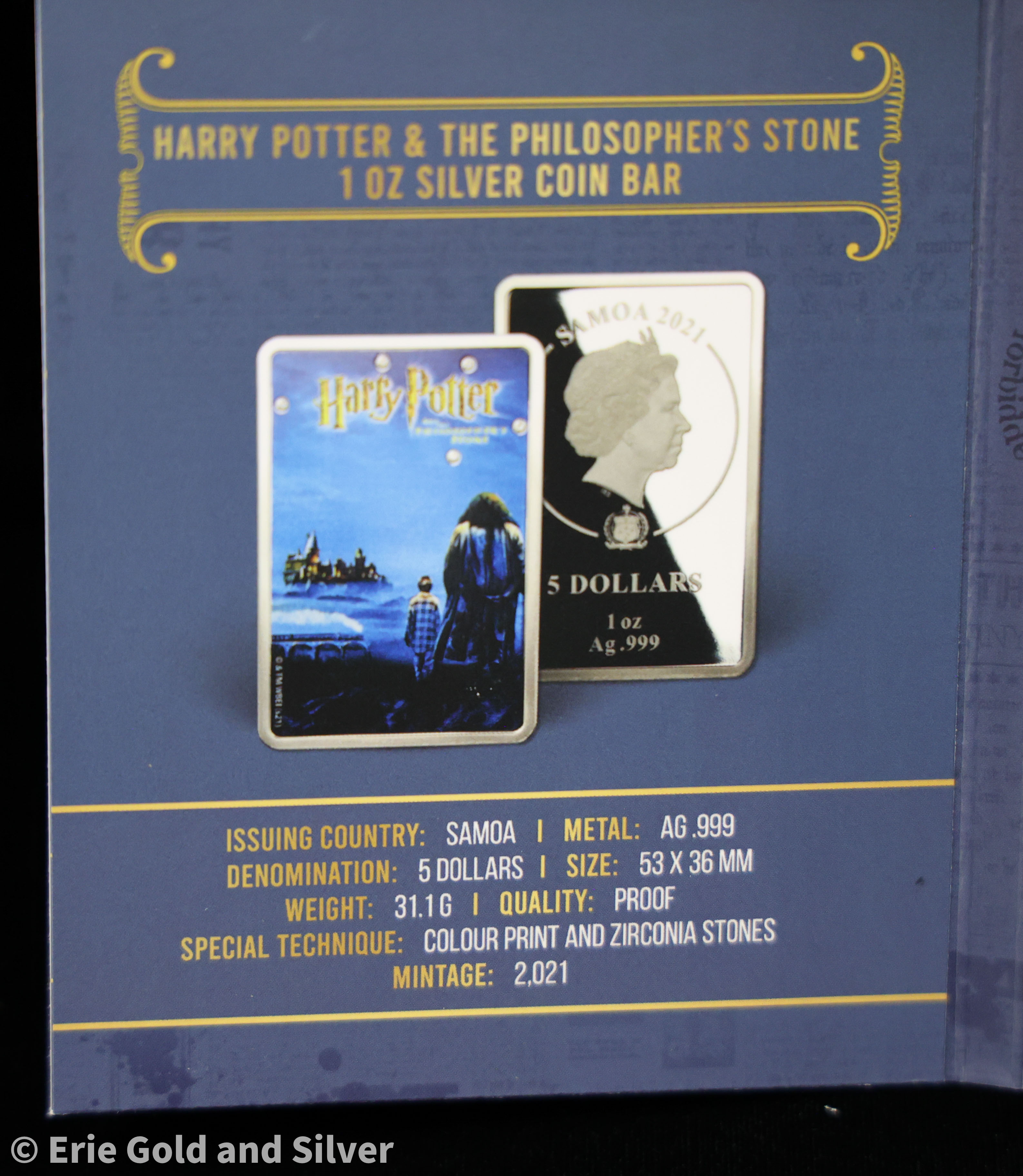 For sale is a Harry Potter and the Philosopher's Stone 1 oz Silver Coin