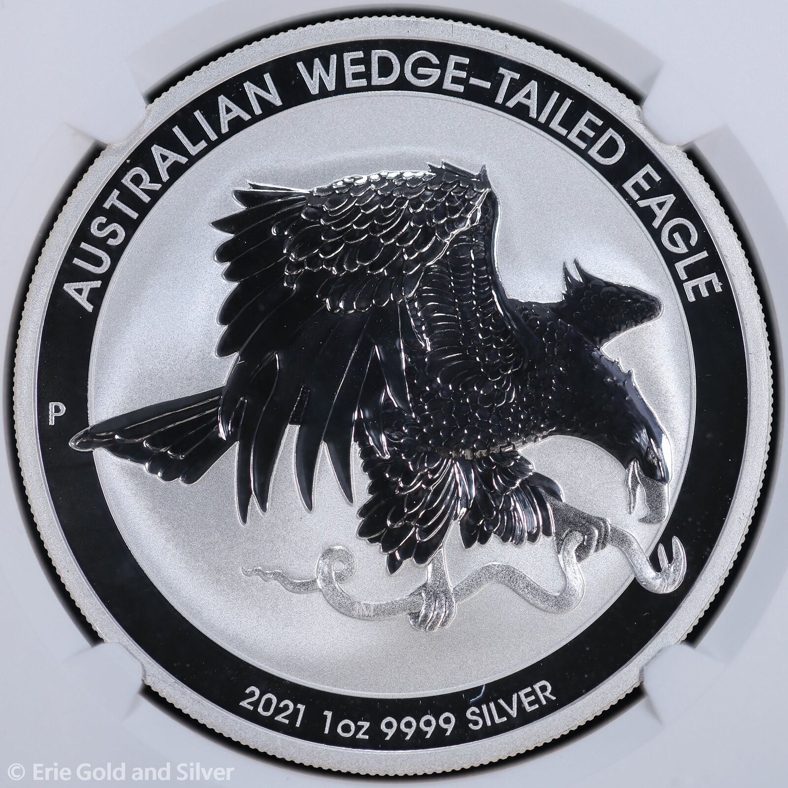 2021-P $1 Australia 1 oz Silver Wedge-Tailed Eagle NGC MS 70 | Mercanti Signed