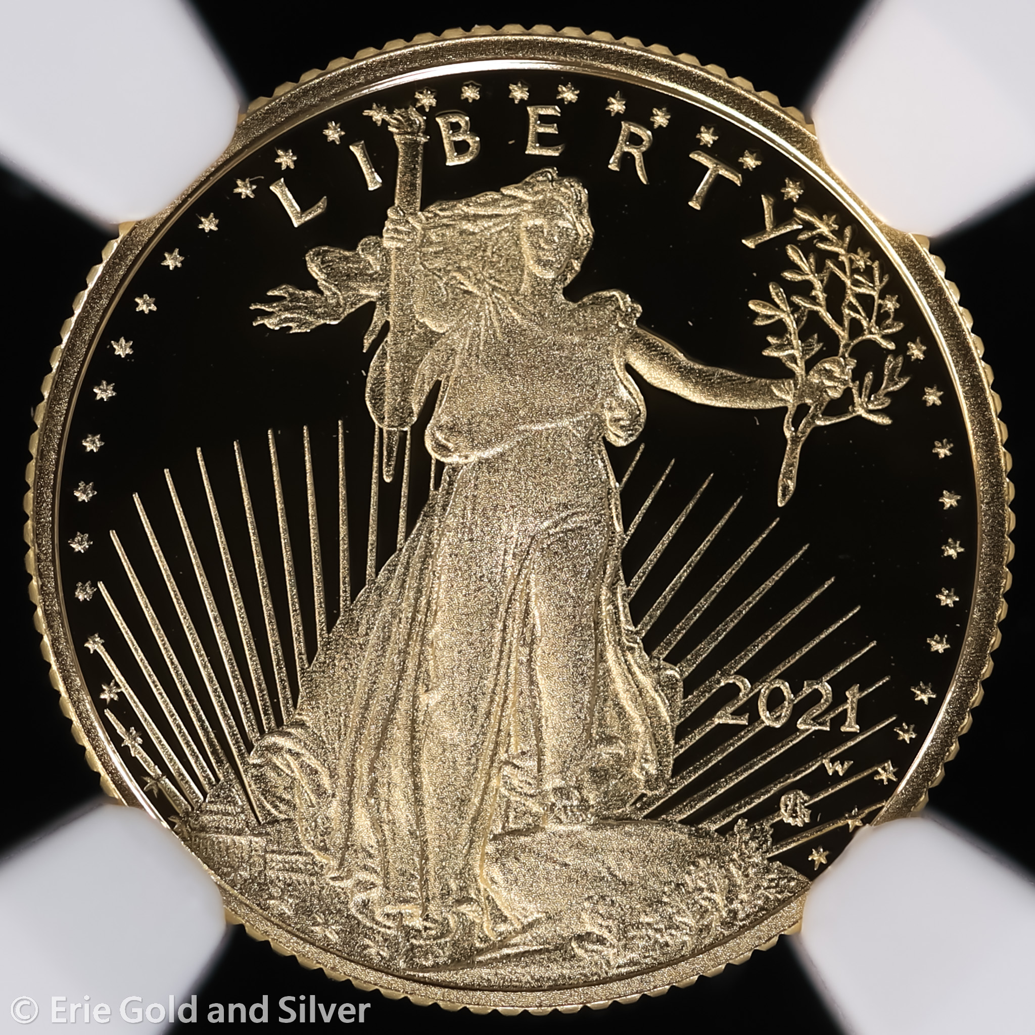 For sale is a 2021-W $5 Proof T-2 1/10 oz American Gold Eagle. Certified / graded by NGC at PR 70 Ultra Cameo.