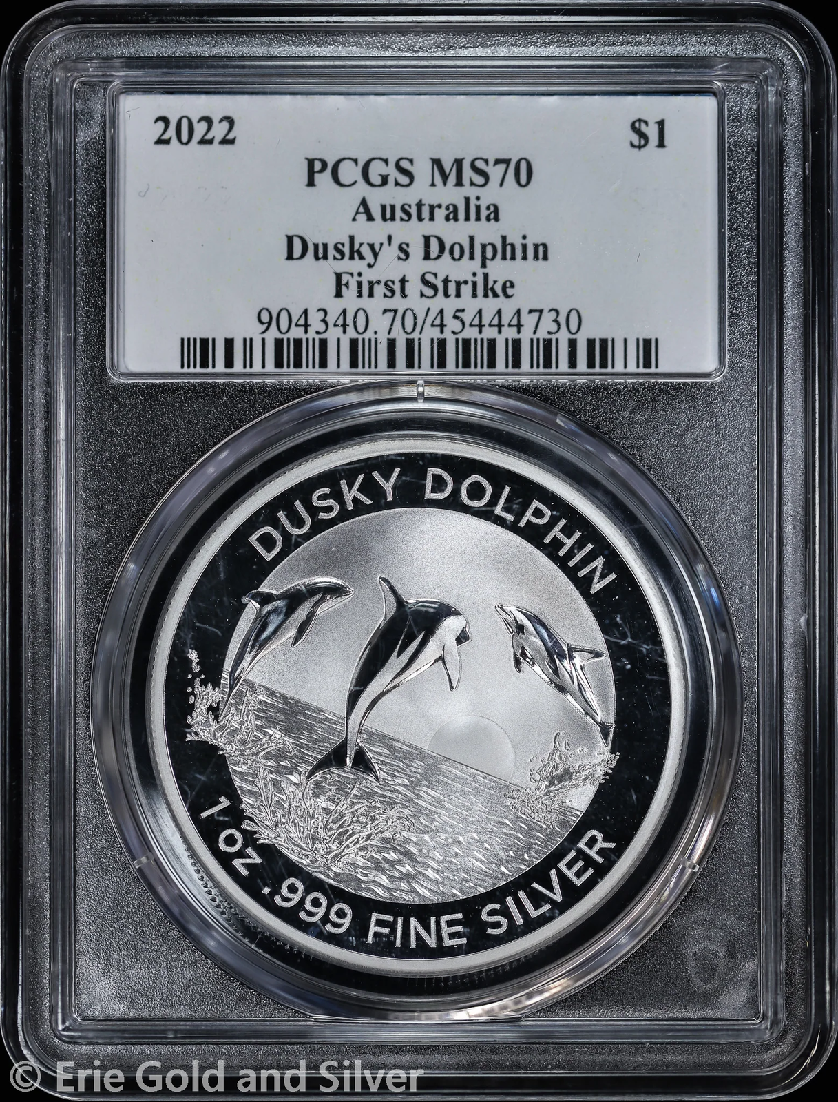 2022 $1 Australia 1 oz Silver Dusky Dolphin PCGS MS 70 | First Strike UNC BU