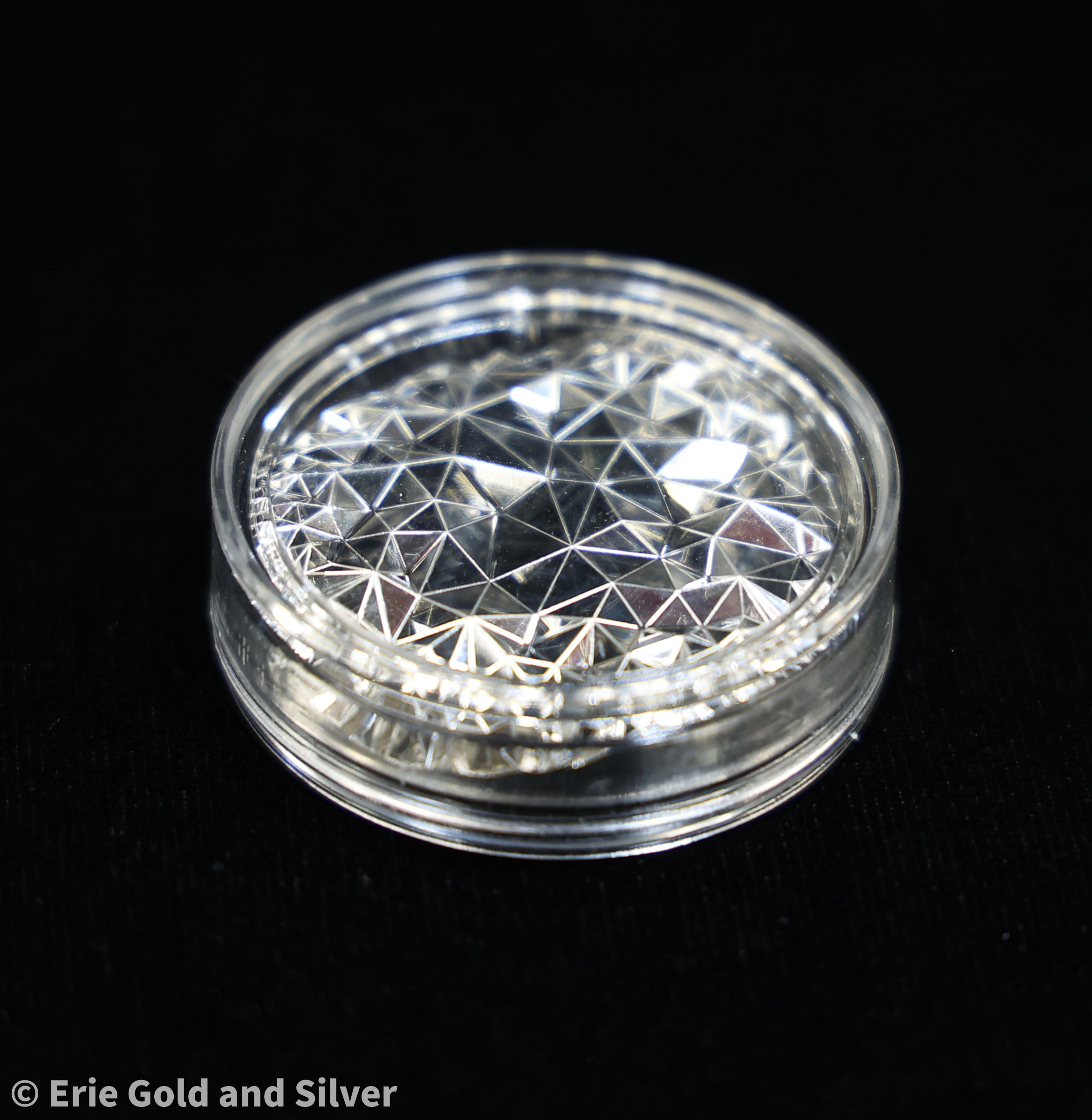 Experience the pinnacle of modern numismatic artistry with the 2022 Silverland: The Rock coin from the Cook Islands.Struck in 2 oz of .999 fine silver, this $10 legal tender coin showcases an innovative faceted crystal-like design, achieved through Smartminting® ultra high relief technology. The intricate geometry and mirrored proof finish create a mesmerizing play of light, evoking the natural beauty of gemstones and geodes.