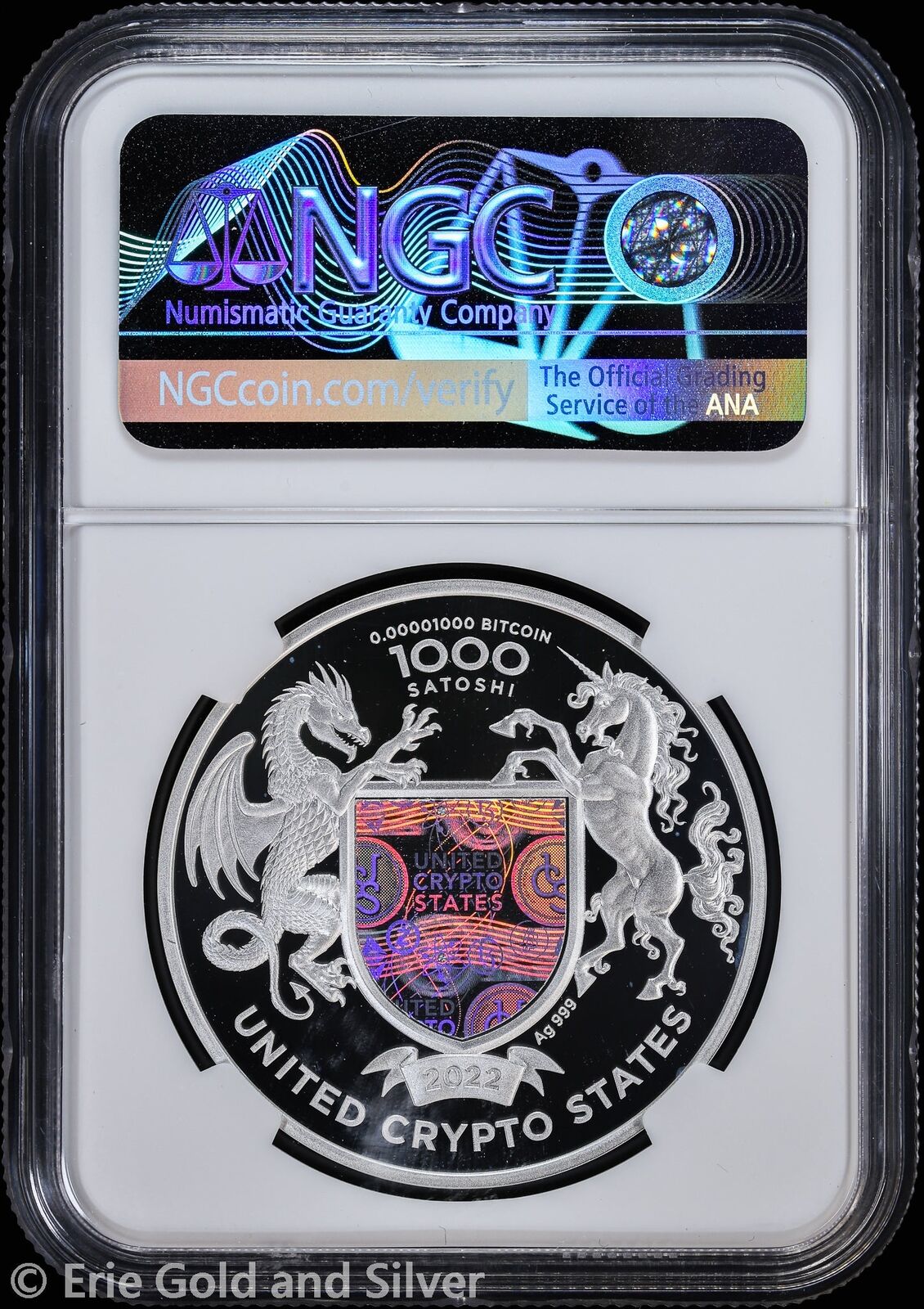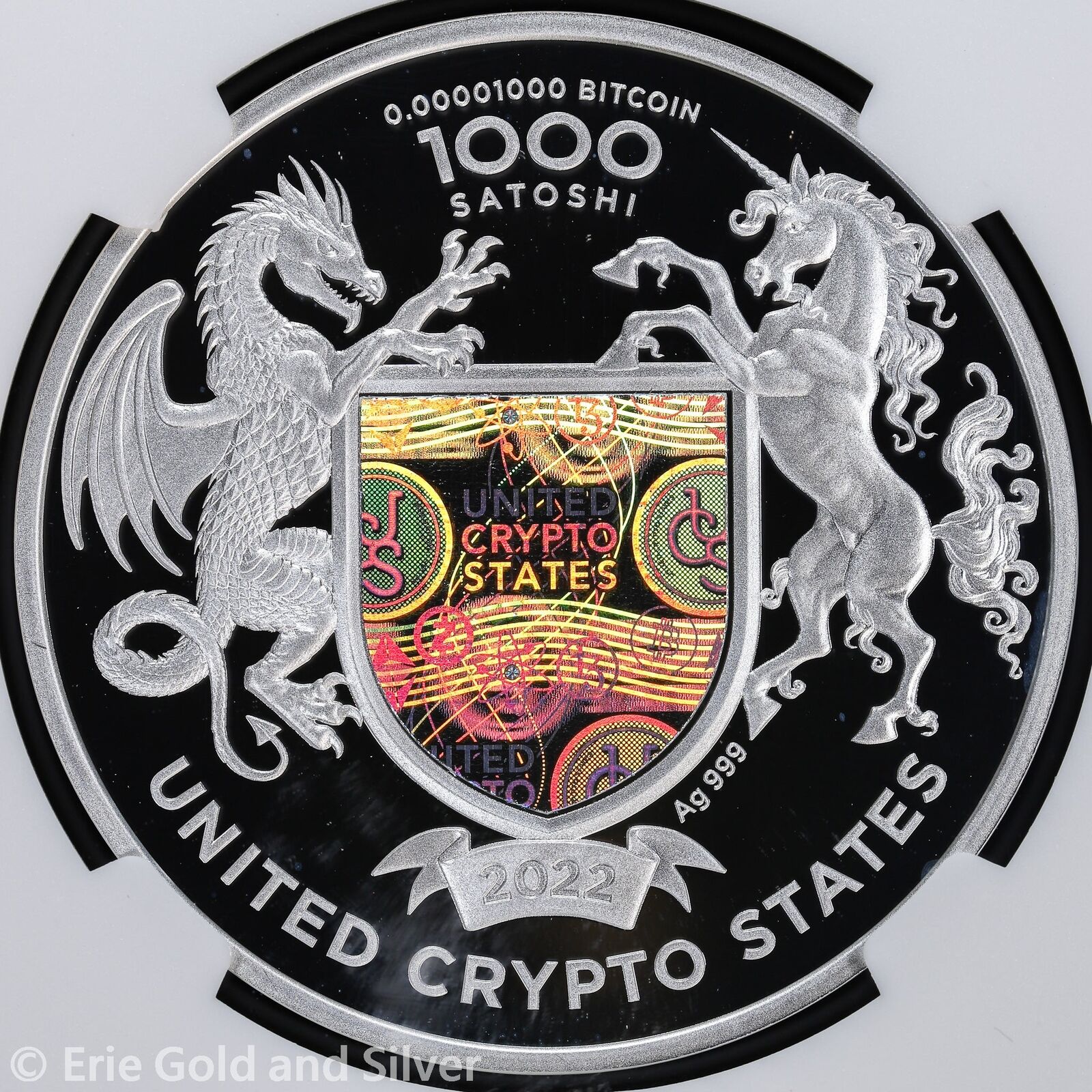 2022 1000S 1 oz Silver Proof Liberty NGC PF 69 UC | United Crypto States Satoshi
