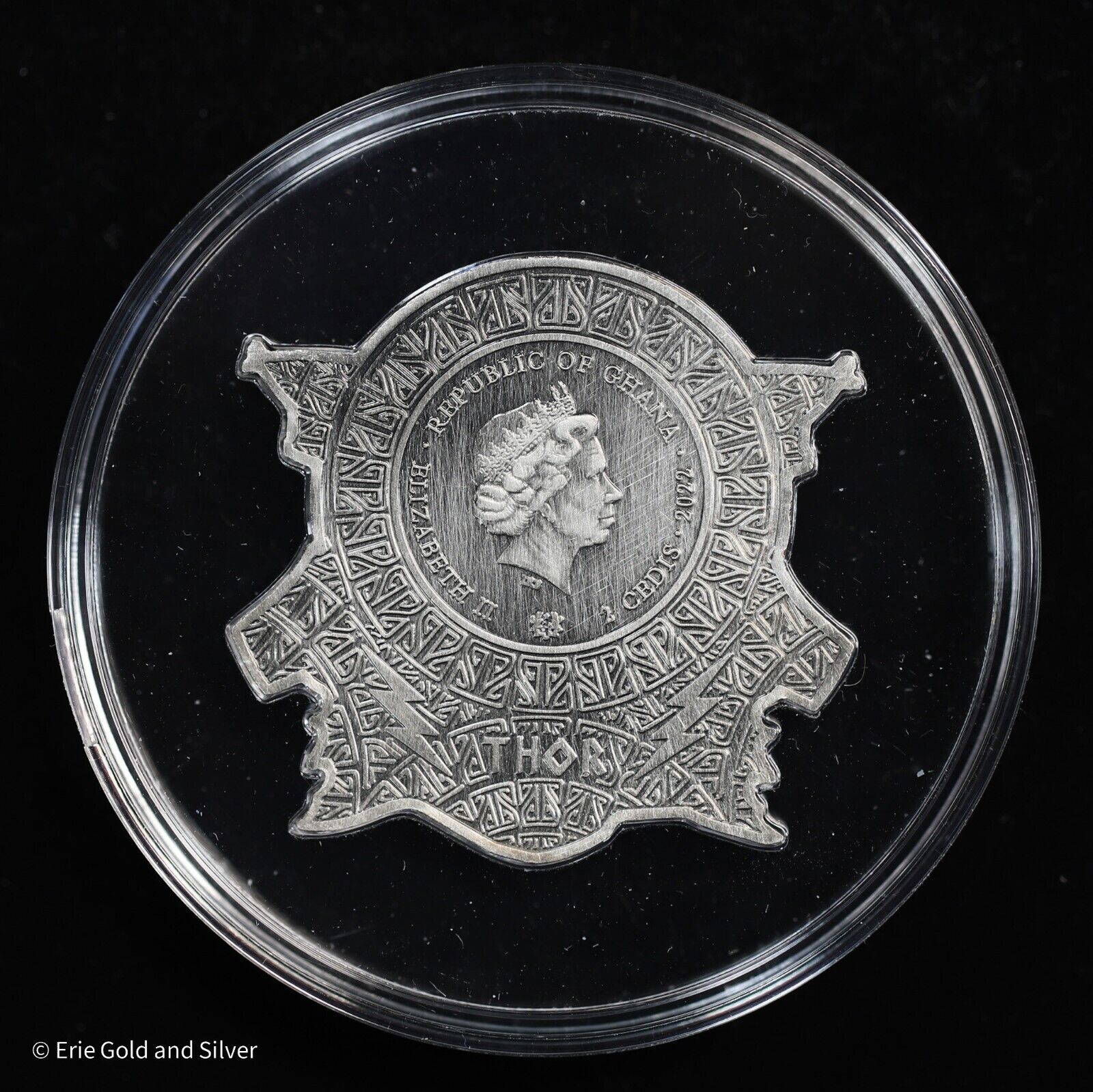 2022 2 Cedis Ghana Norse Gods Thor Silver Plated Zinc-Copper-Aluminum Coin 26g