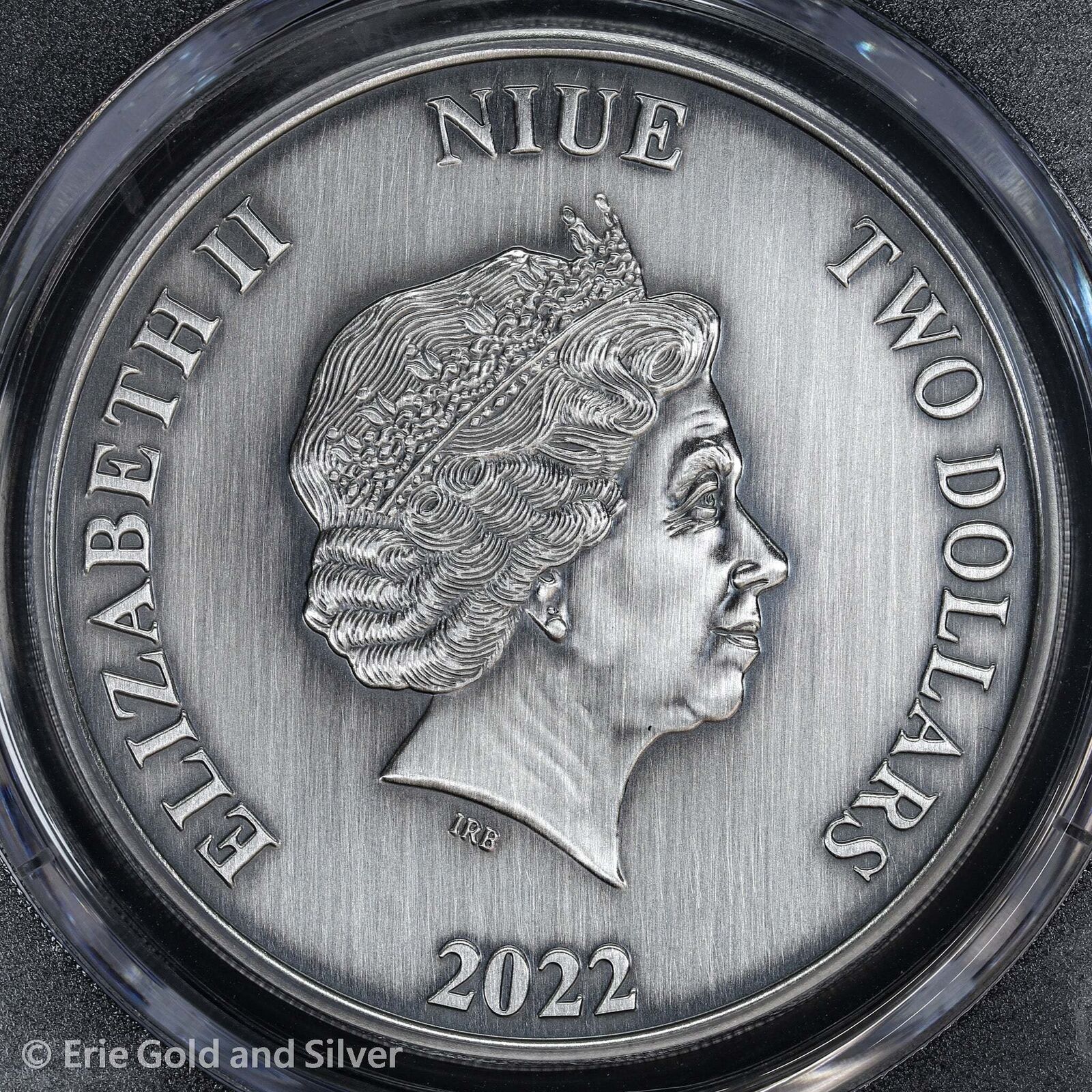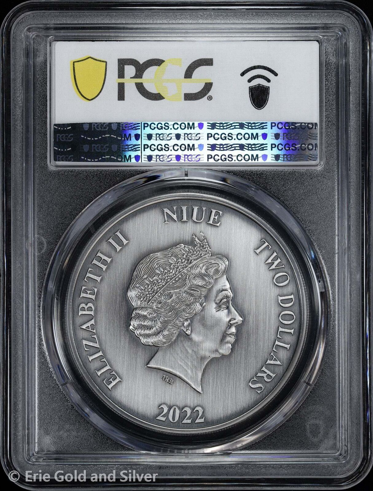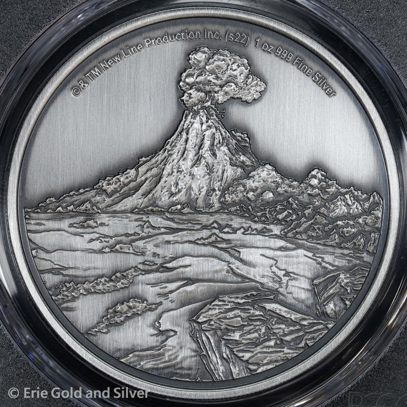 2022 $2 Niue 1 oz Silver Antique Finish LOTR Mount Doom PCGS MS 70