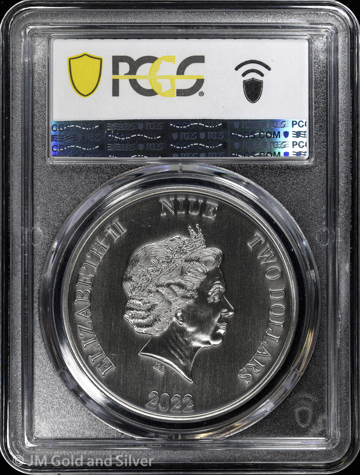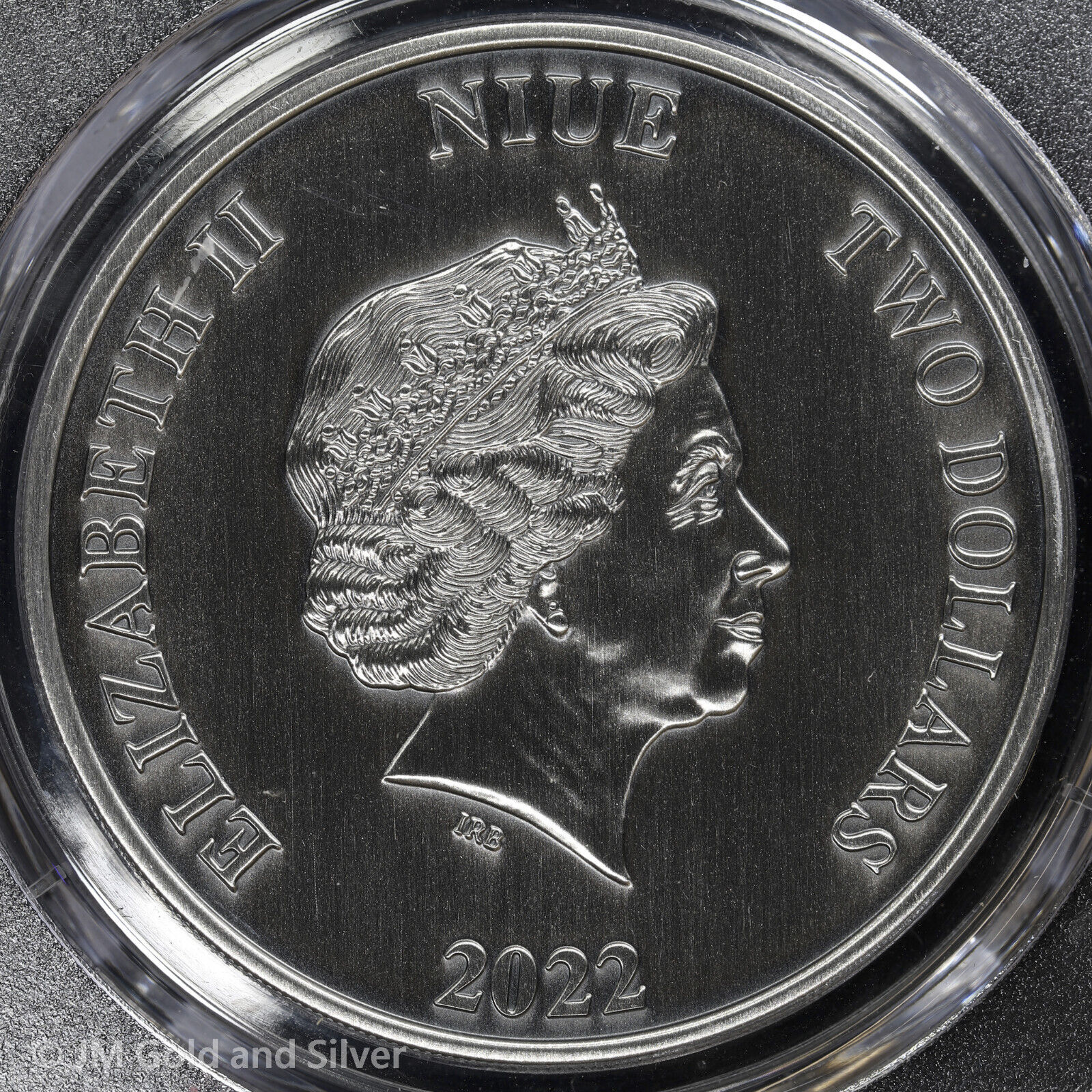 2022 $2 Niue 1 oz Silver LOTR Helm's Deep Antique Finish PCGS MS 70