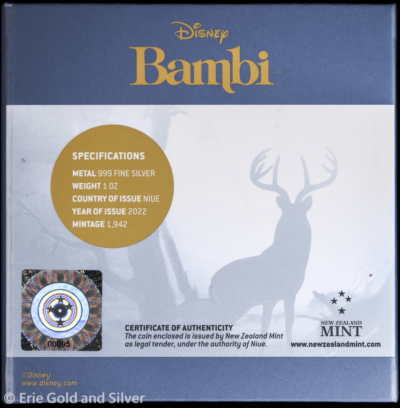 2022 $2 Niue Bambi & Flower 1 oz Silver Colorized Coin in OGP