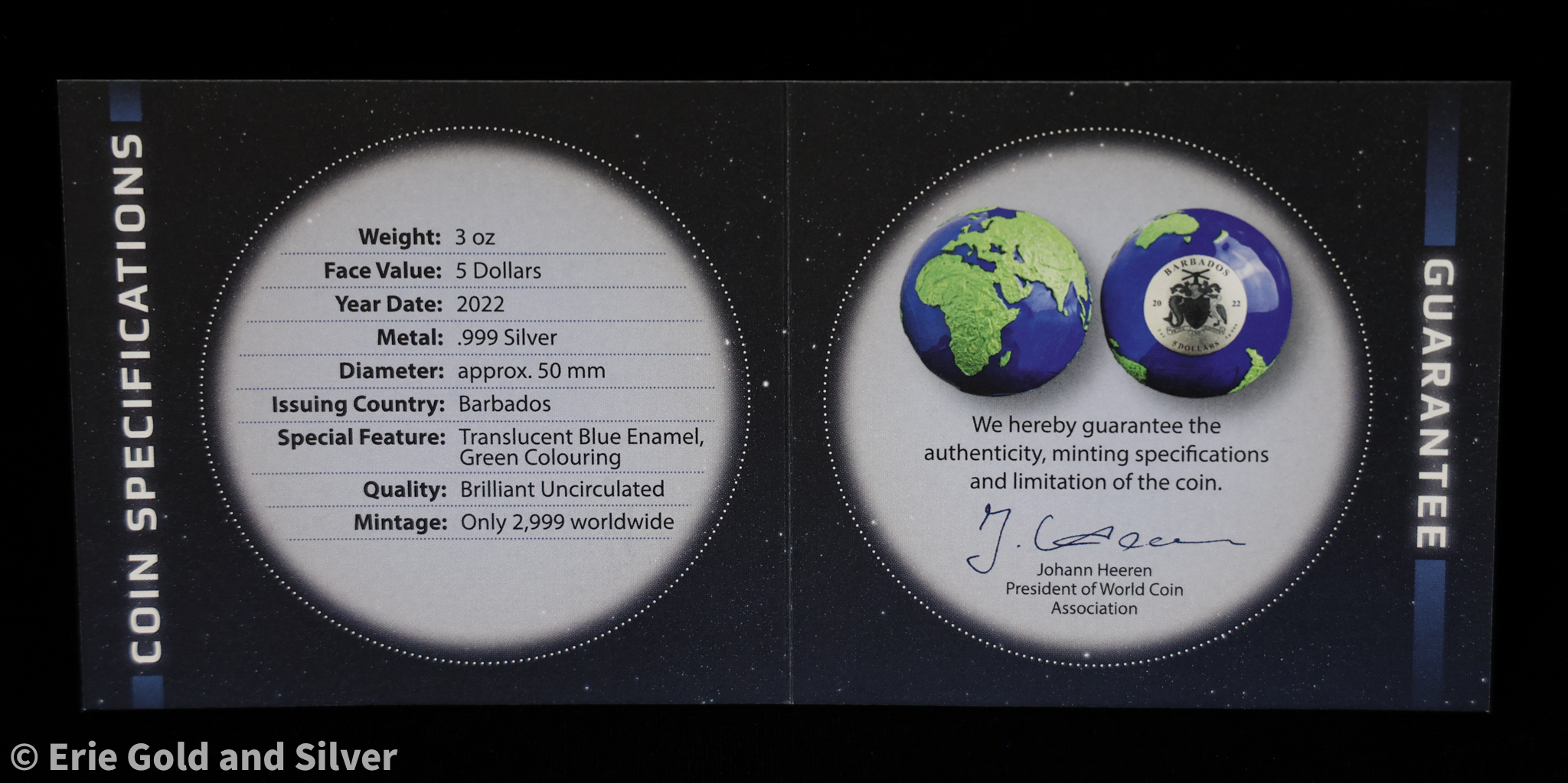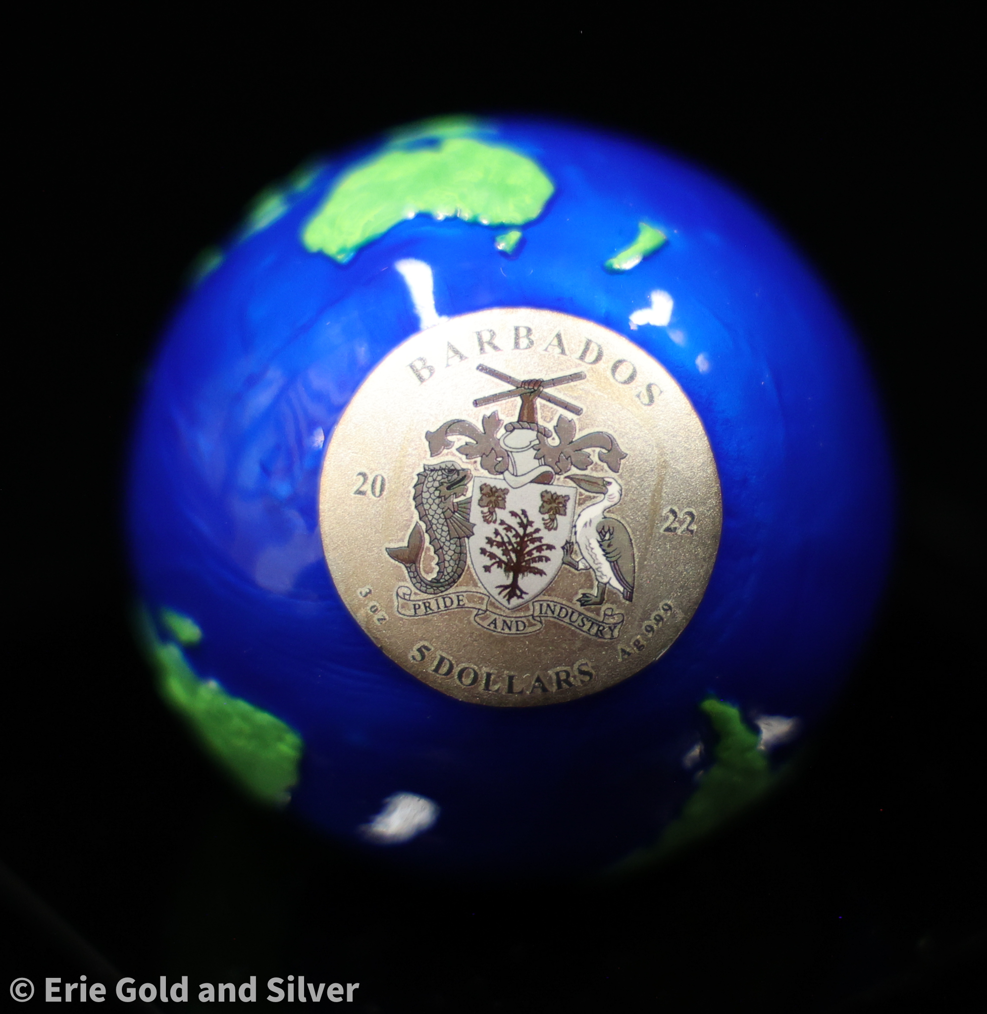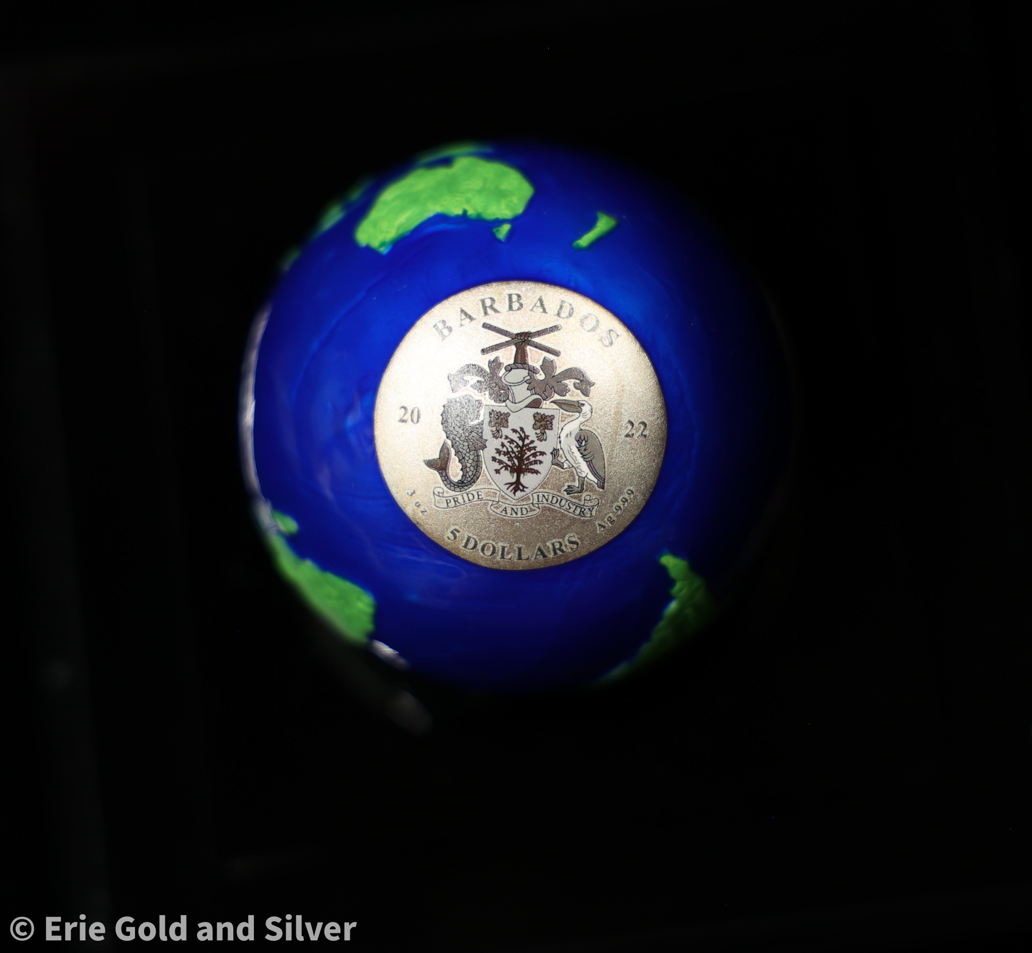2022 $5 Barbados Blue Marble Earth Spherical Green Planet 3 oz silver with Box