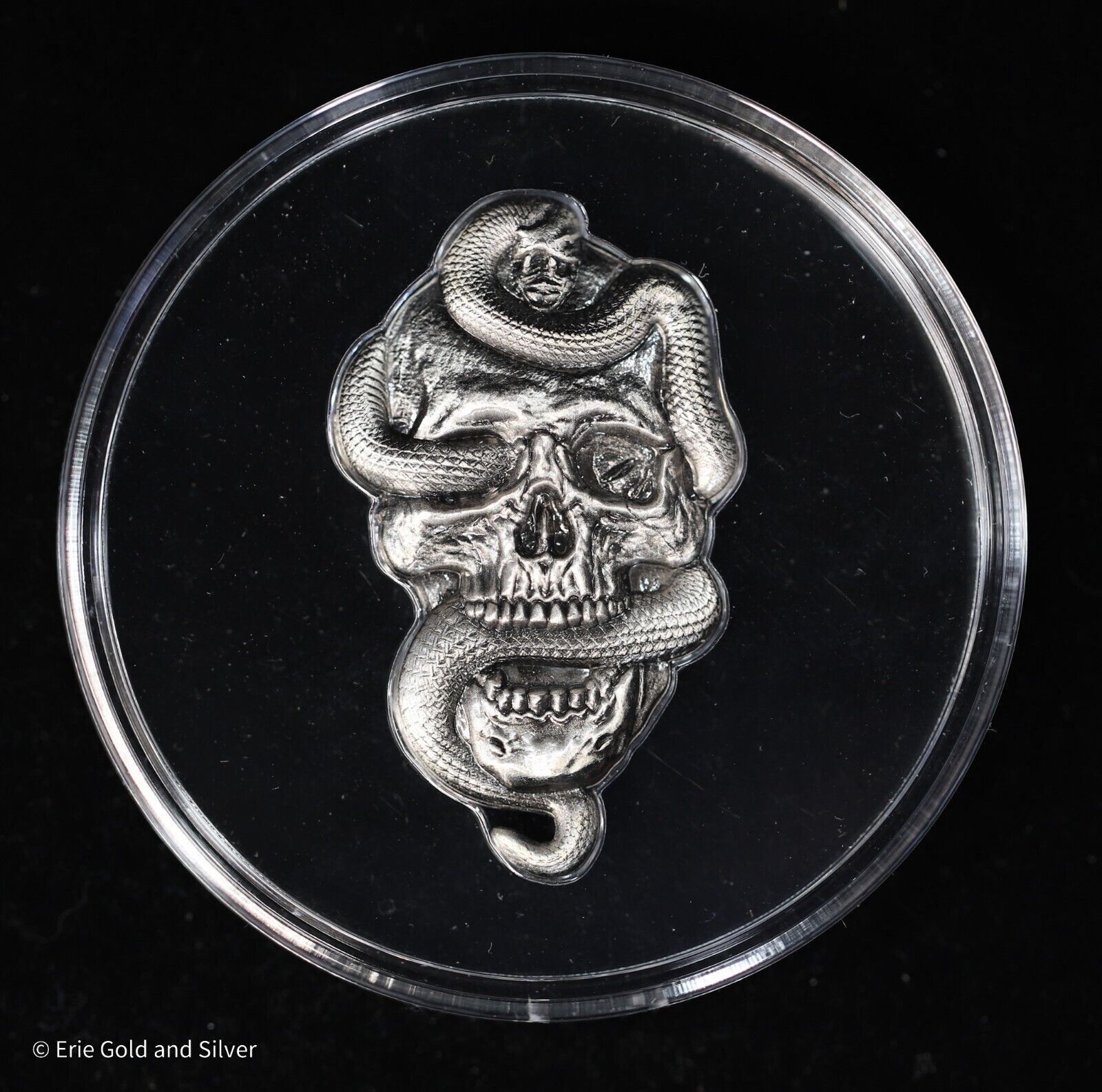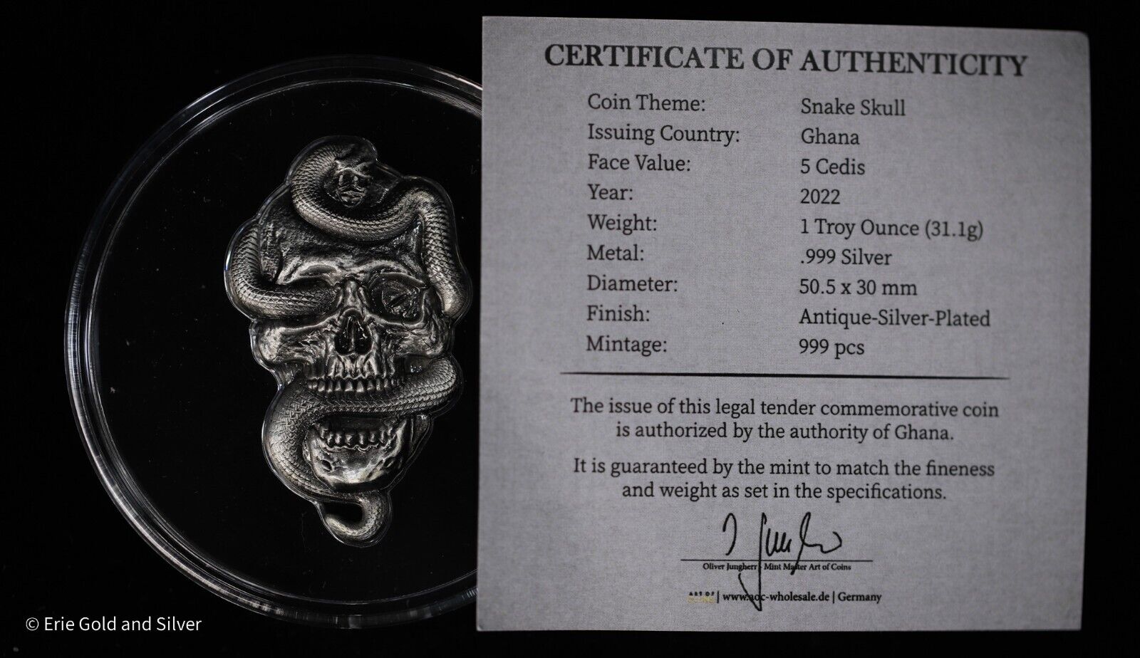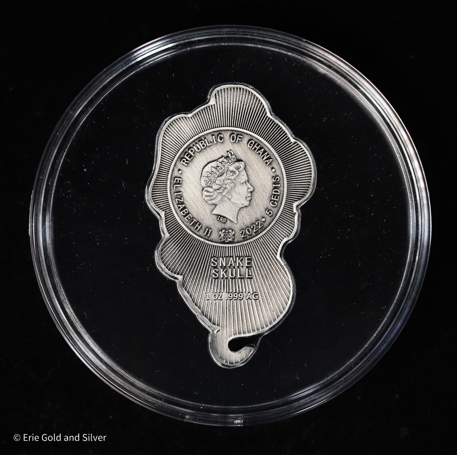 2022 5 Cedis Ghana Skull Series Snake 1 oz Silver w/ COA