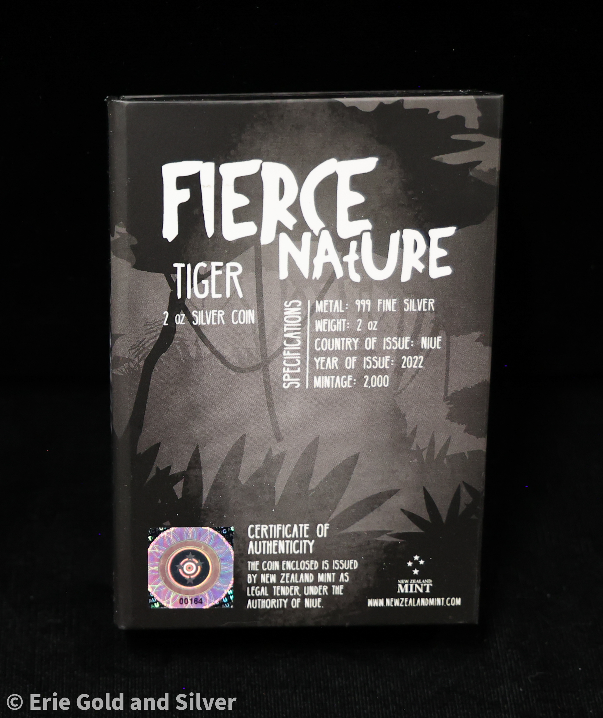 2022 $5 Niue Fierce Nature Tiger 2 oz Silver Coin in OGP