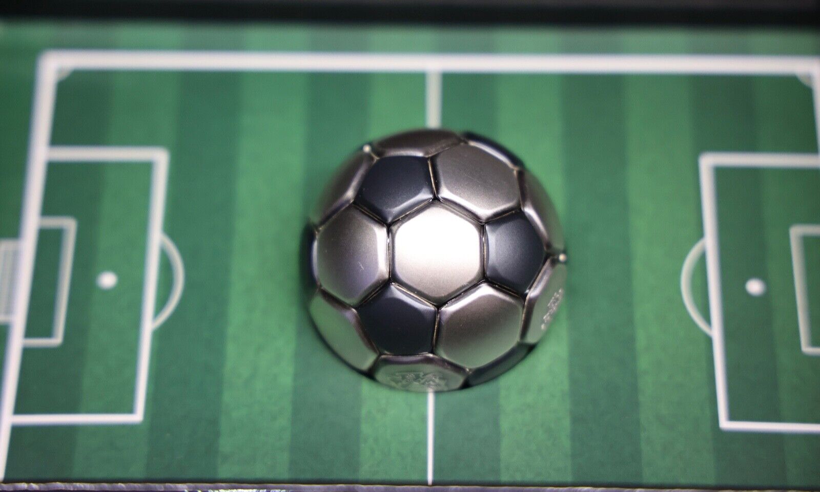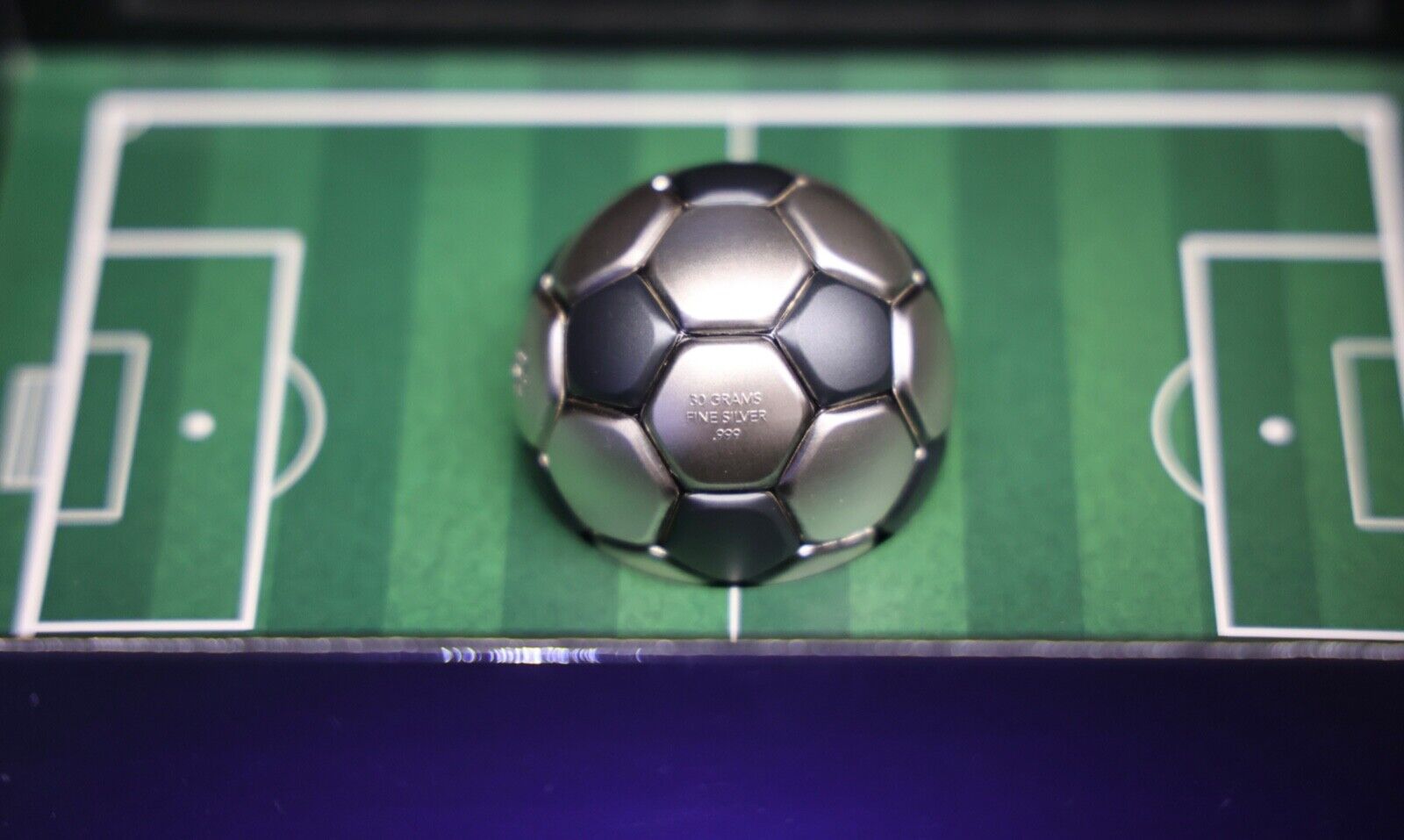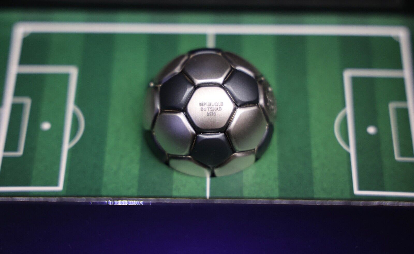 2022 Chad 30 gram Silver Soccer Ball Spherical Antiqued Coin .999 Fine with Box