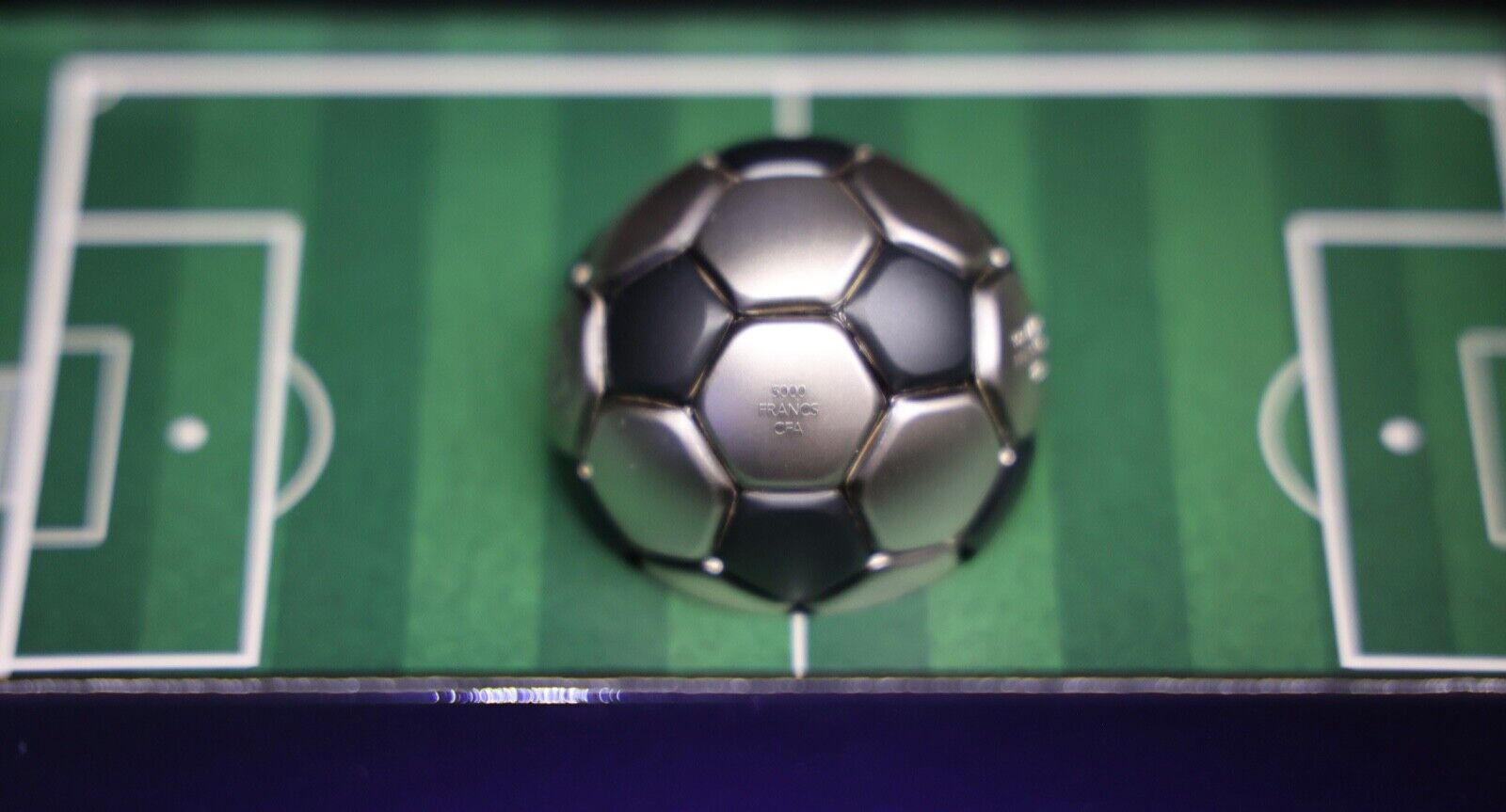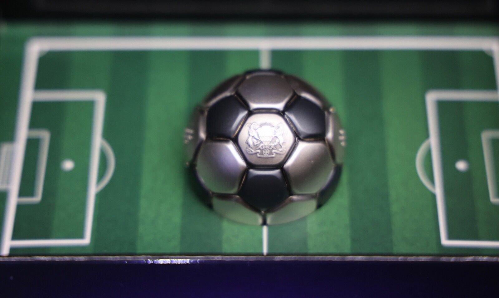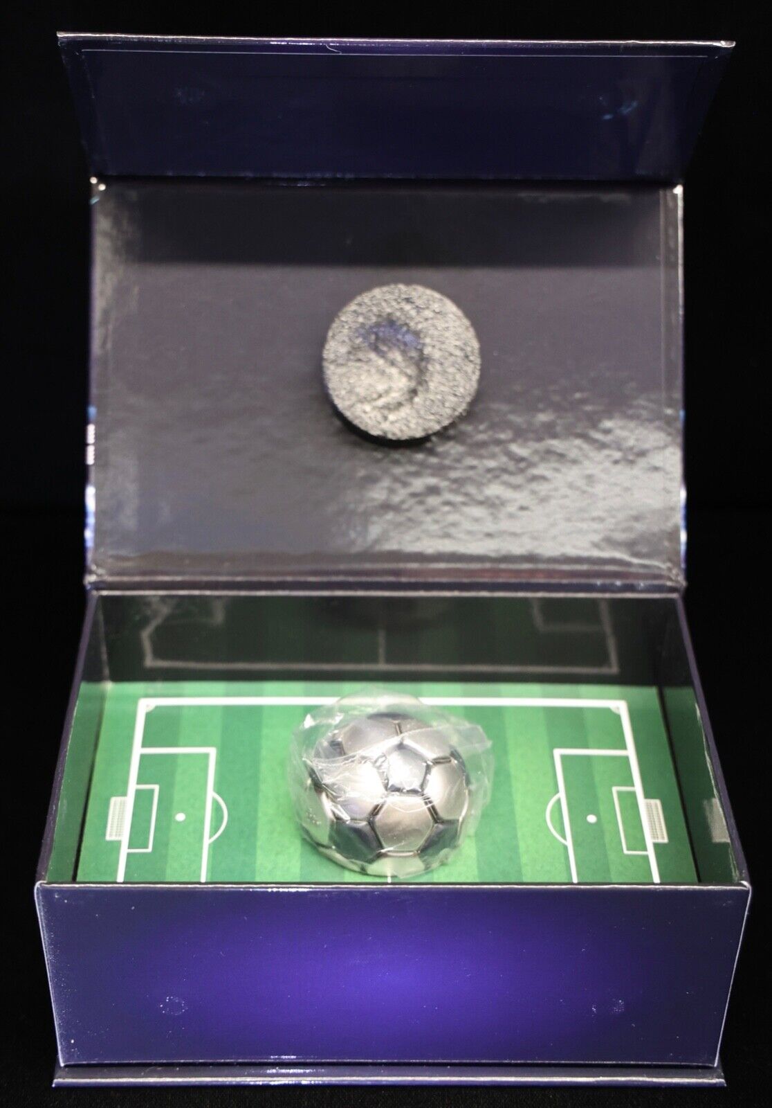 2022 Chad 30 gram Silver Soccer Ball Spherical Antiqued Coin .999 Fine with Box