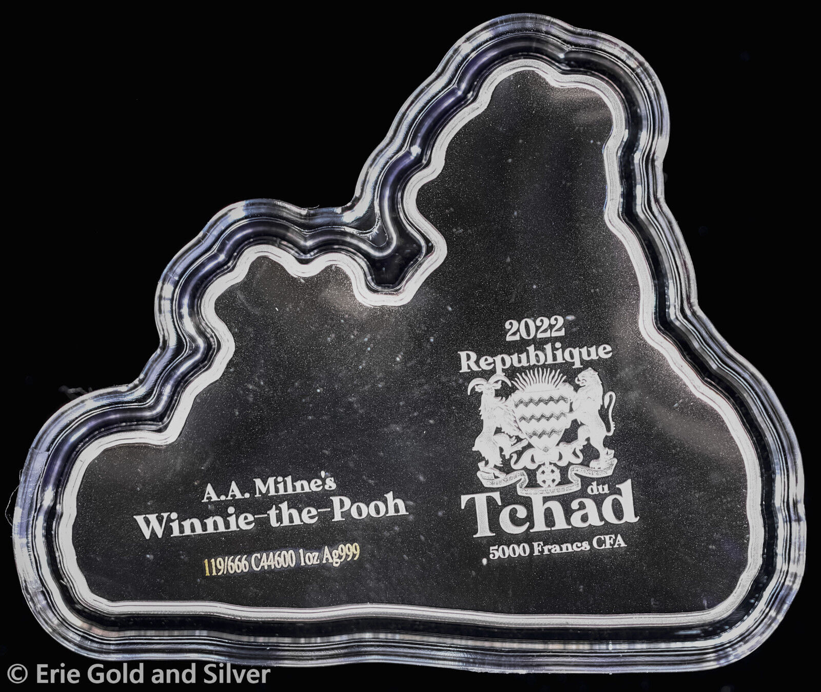 2022 Chad Winnie the Pooh Shaped 1 oz Silver Proof Colorized Coin in OGP