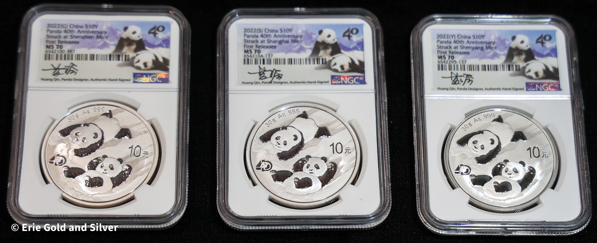 2022 China Silver Panda 3-Coin Set NGC MS 70 | Huang Qin Signed Slabs, First Releases