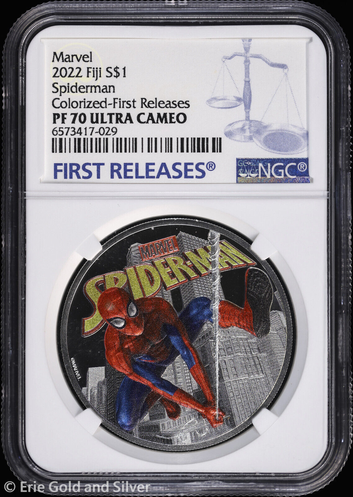 For sale is a 2022 $1 Fiji Marvel: Spider-Man 1 oz Silver Colorized Coin & Pin Set in OGP. Certified/Graded by NGC at PF 70 Ultra Cameo. View pictures for details and condition. The item pictured is the exact item you will receive. Feel free to contact us with any questions.