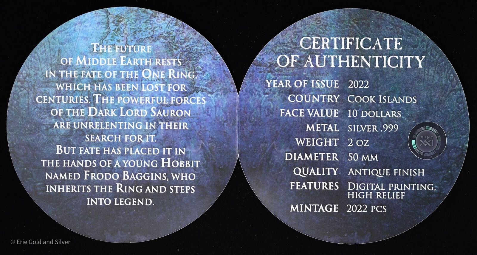 For sale is a 2022 Frodo Baggins 2 oz Silver Antique Finish Coin with OGP. View pictures for details and condition. There are multiple available, so the coin you receive may not be the exact coin pictured, however it will be similar quality. Feel free to contact us with any questions.