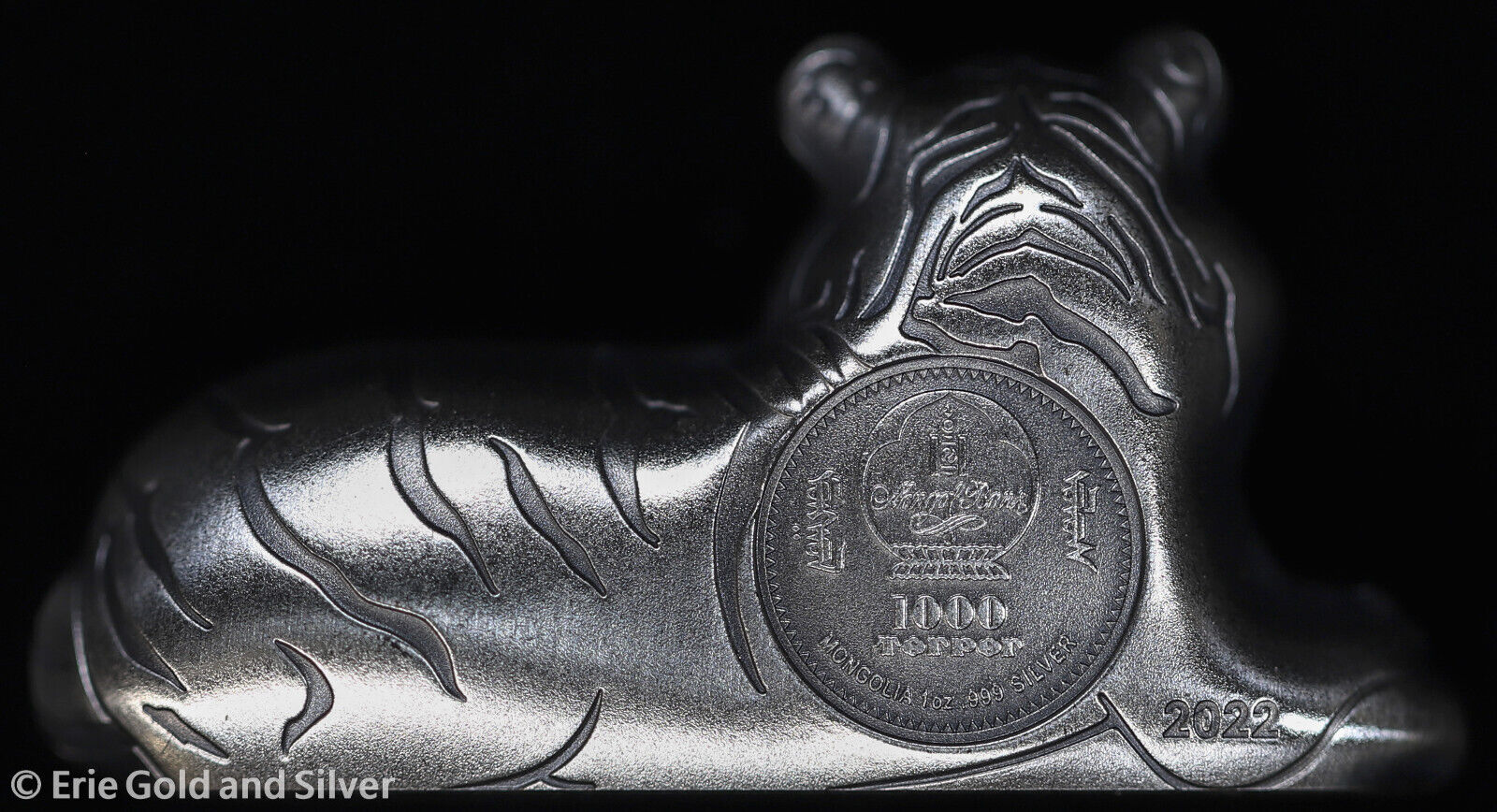 2022 Mongolia 3D Charming Tiger Shaped 1 oz Silver Antiqued Coin in OGP