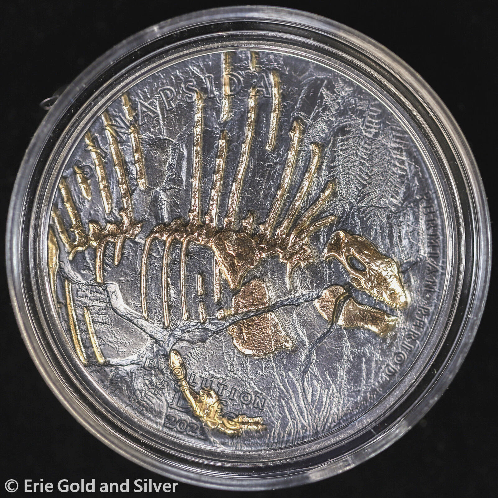 2022 Mongolia Synapsida Evolution of Life 1 oz Silver Antique Finish Coin in OGP