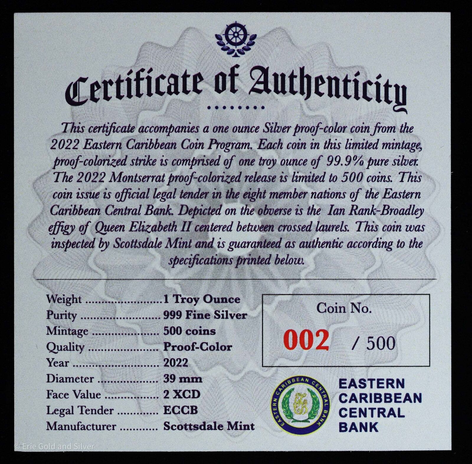 For sale is a 2022 Monsterrat 1 oz Silver Proof Turtle Colorized Coin # 001 w/ OGP. View pictures for details and condition. View pictures for details and condition, the coin pictured is the exact coin you will receive. Feel free to contact us with any questions.