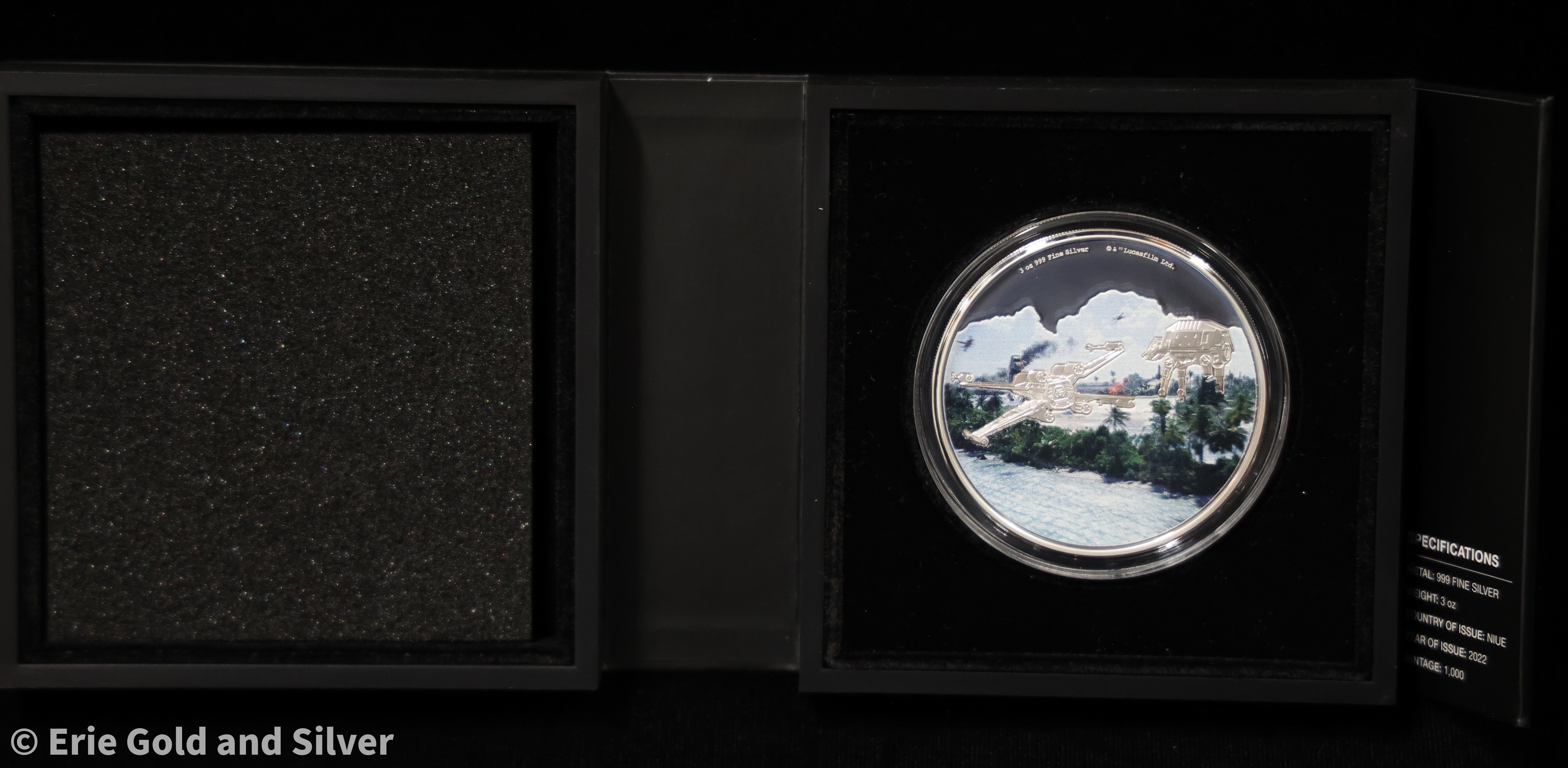Commemorate the pivotal clash from Rogue One with the 2022 Niue Star Wars Battle Scenes: Scarif coin, struck in 3 oz of .999 fine silver. With intricate detailing and a dramatic design, this $10 release captures the intensity of the battle that changed the galaxy—perfect for fans building a premium Star Wars silver collection.
