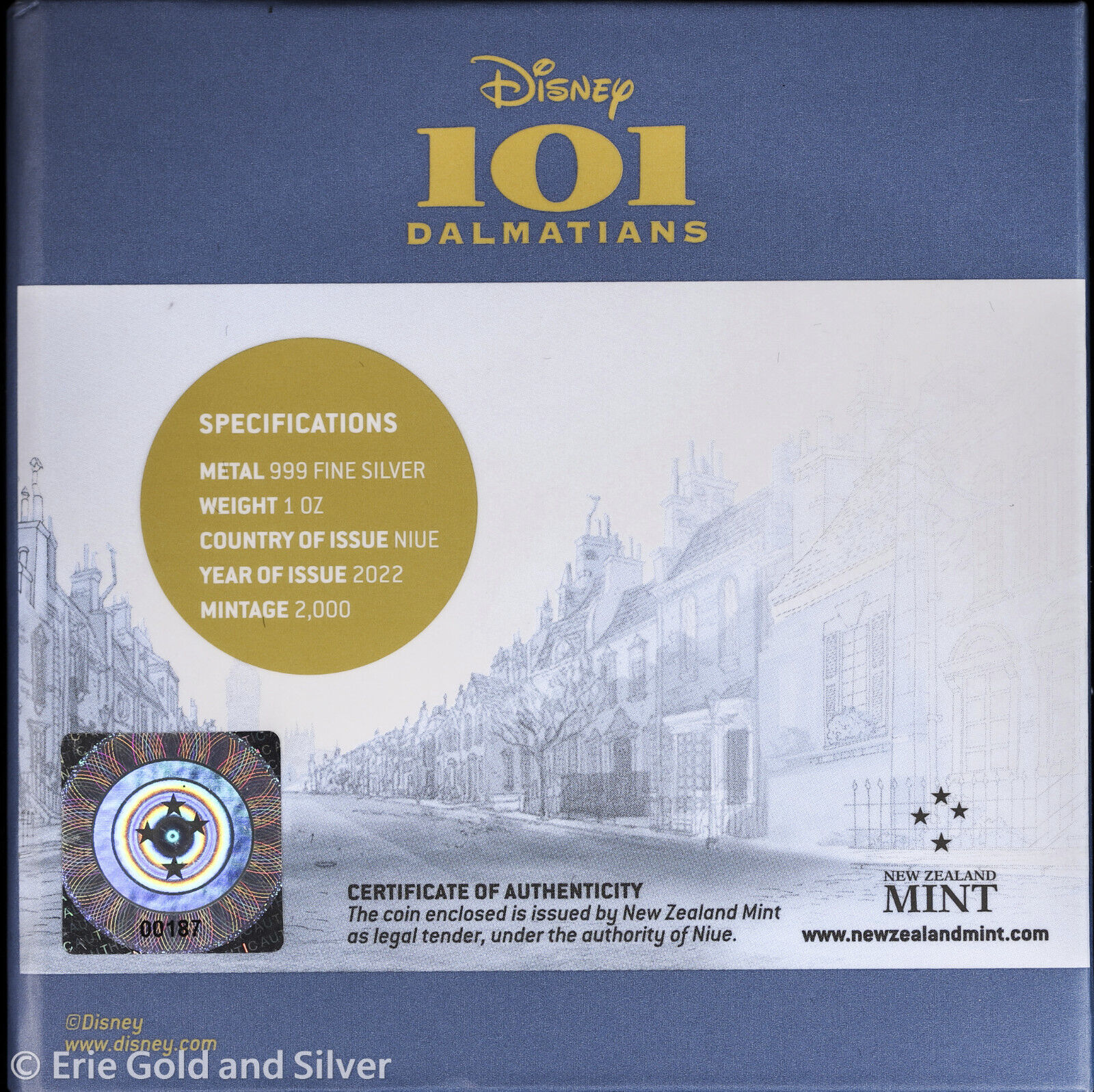 2022 Niue 101 Dalmatians Dalmatian Plantation 1 oz Silver Colorized Coin in OGP