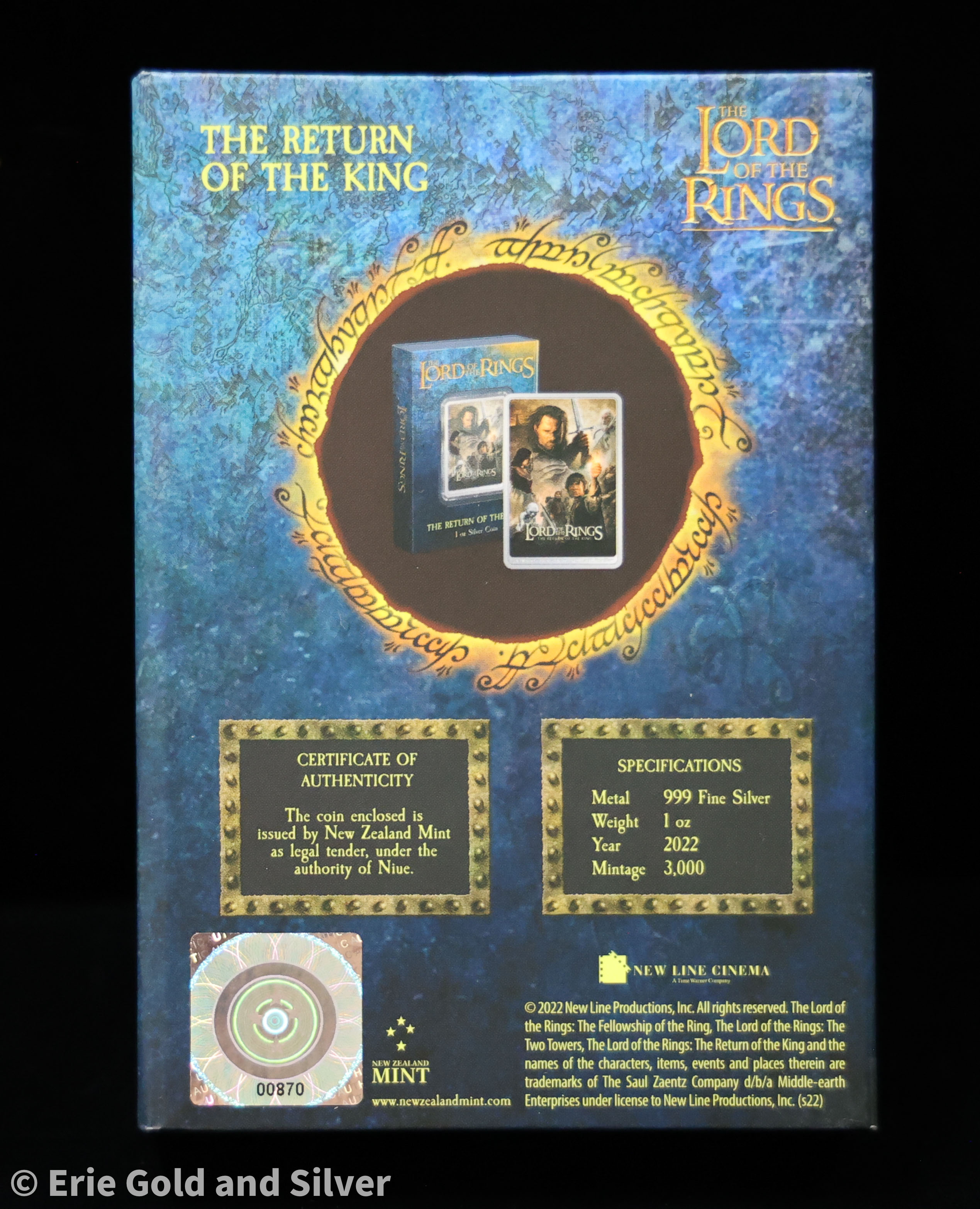 For sale is a Lord of the Rings The Return of the King 1 oz Silver Coin