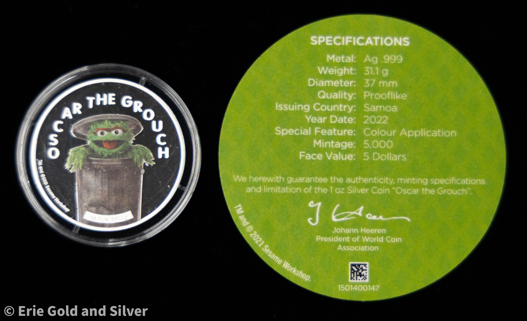 2022 Samoa Sesame Street Oscar the Grouch 1 oz Silver Coin w/ Trash Can