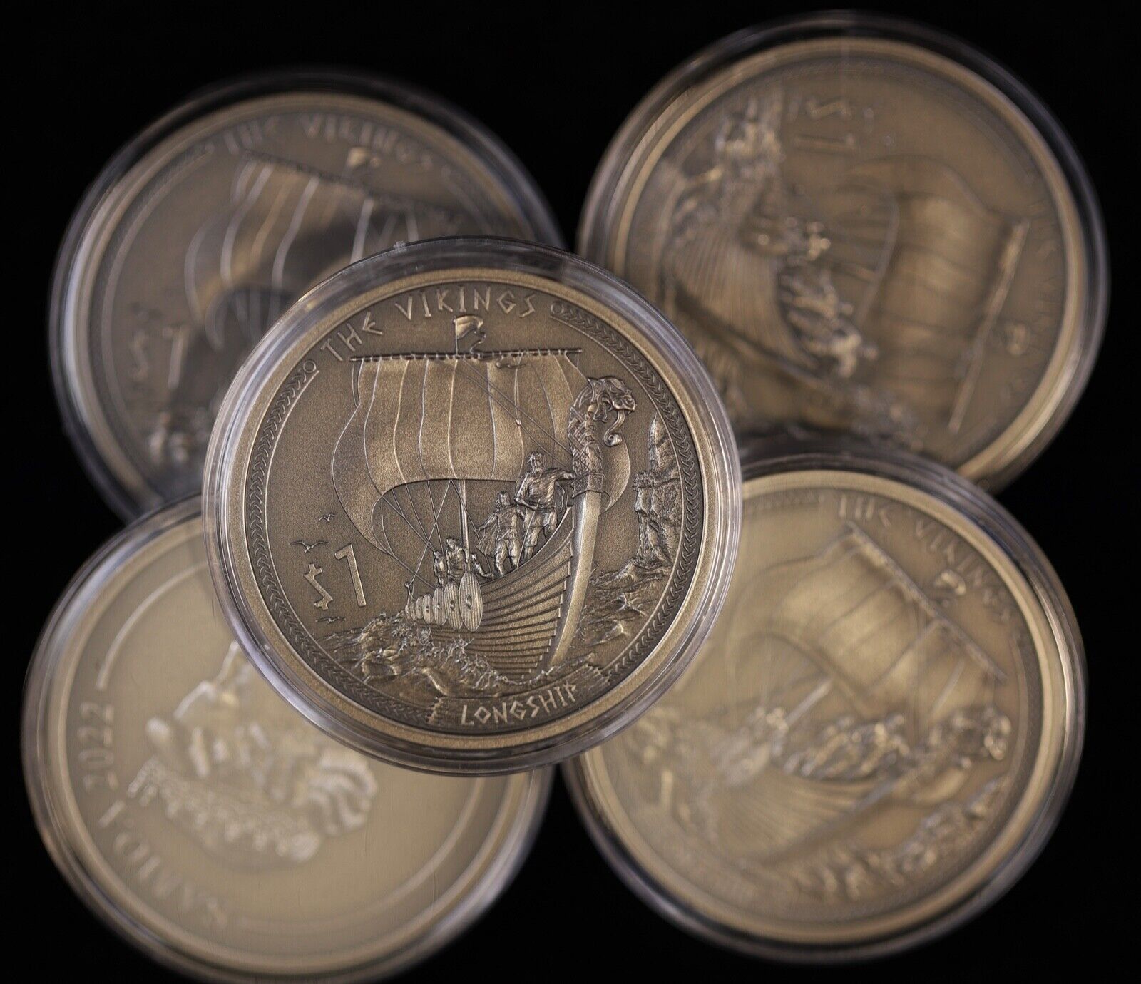 2022 Samoa The Vikings Longship Antiqued 1/2 oz .999 Silver Coin