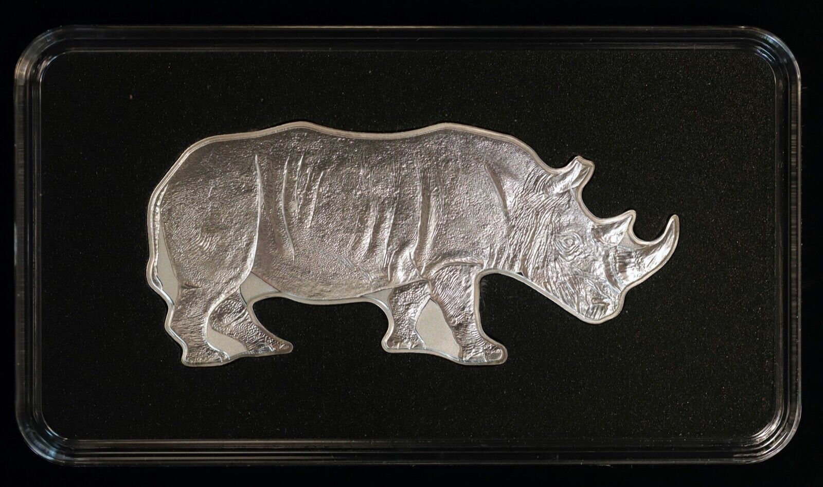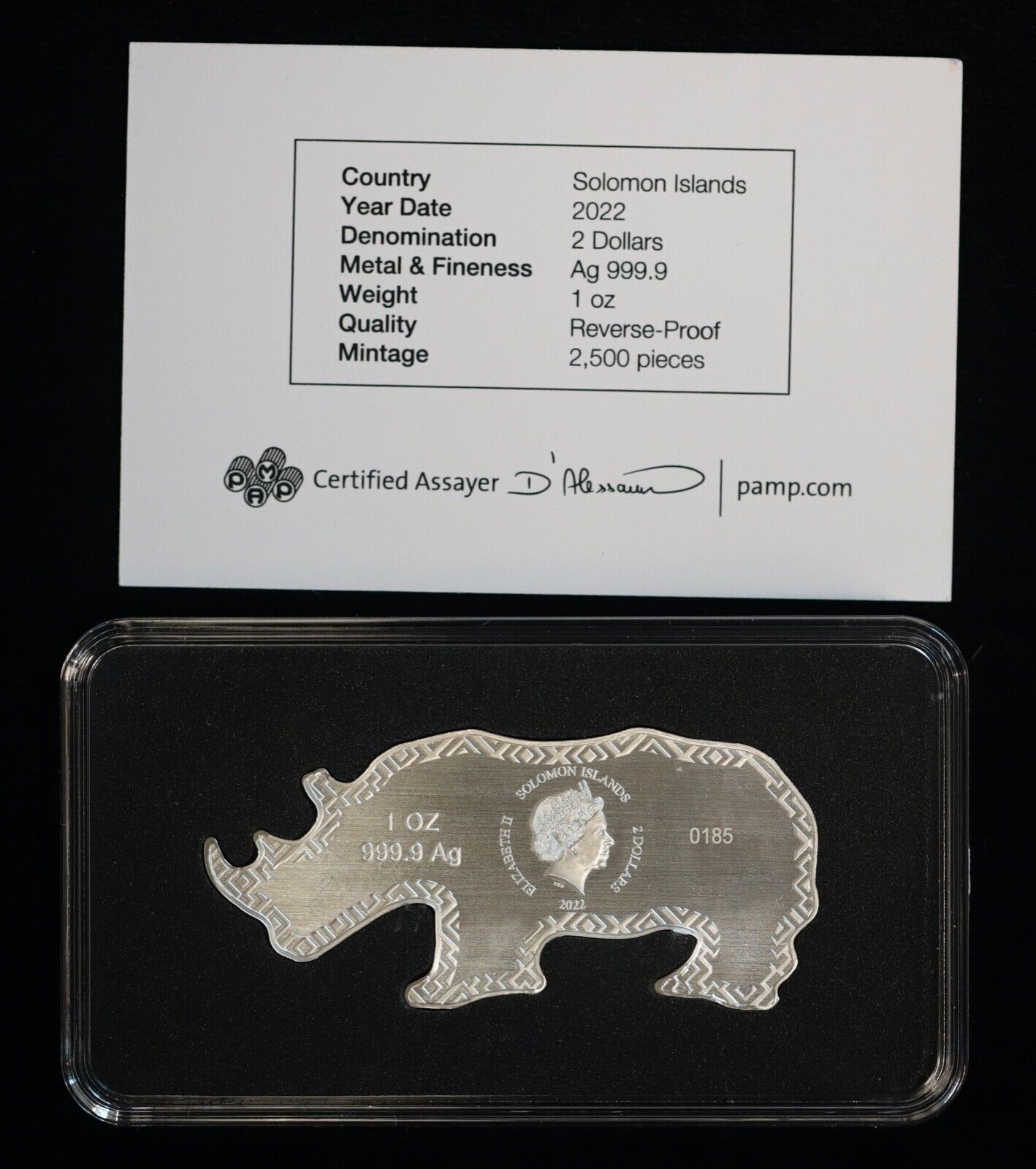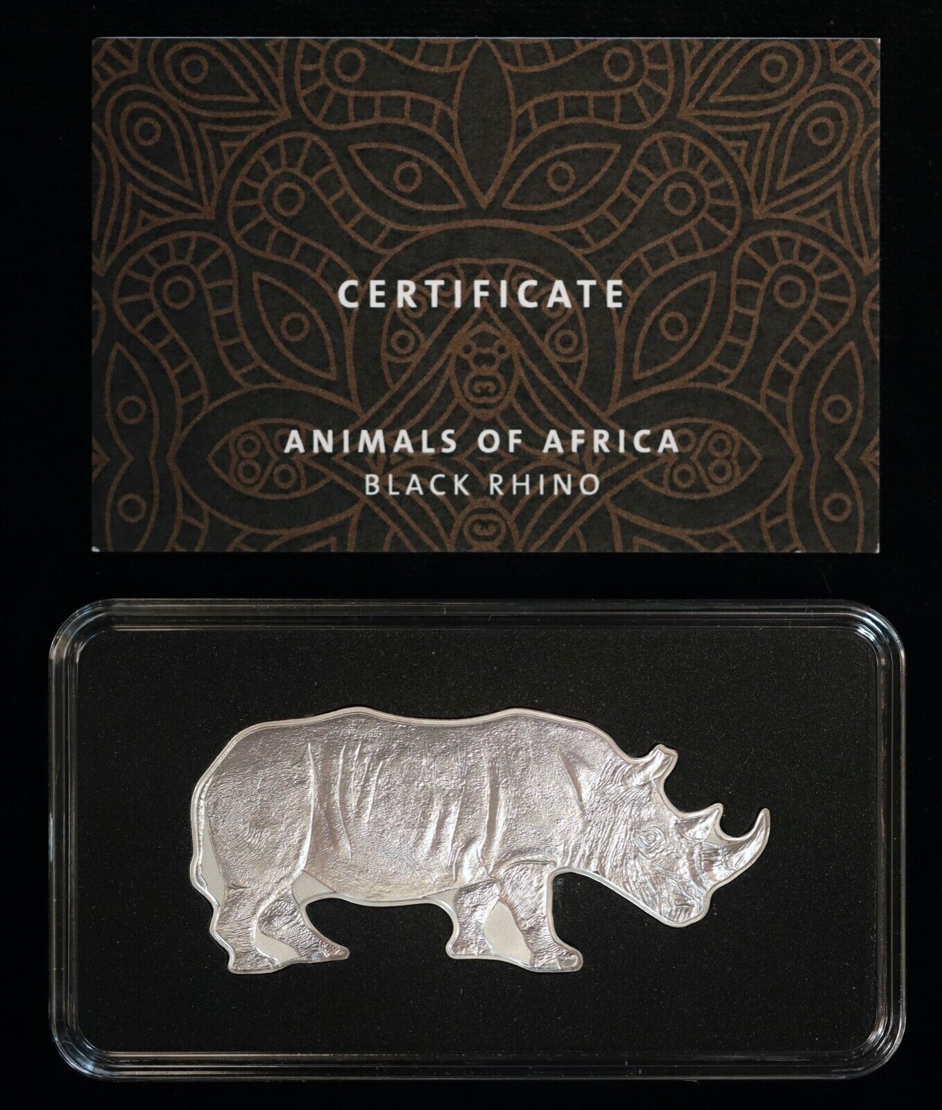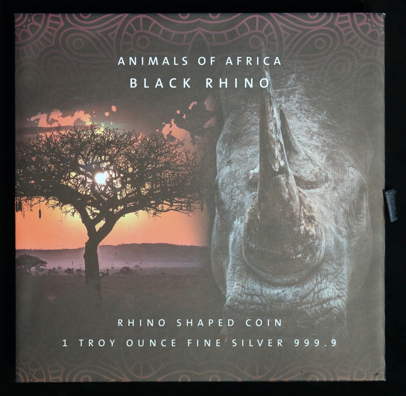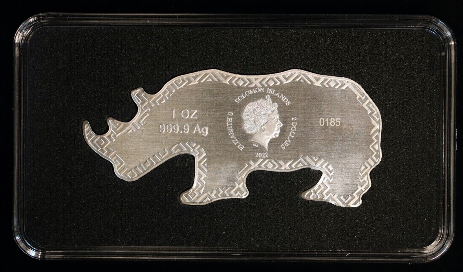 2022 Solomon Islands 1 oz Silver African Black Rhino Shaped Coin in OGP