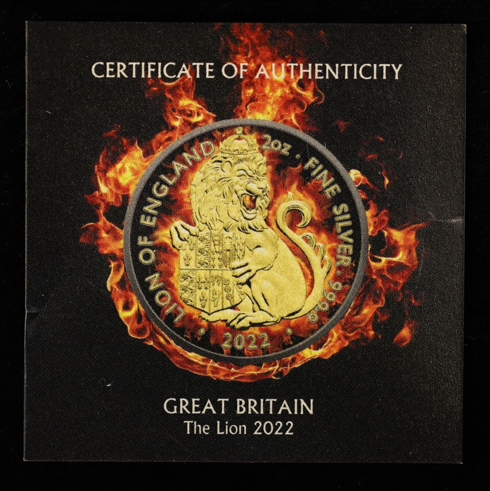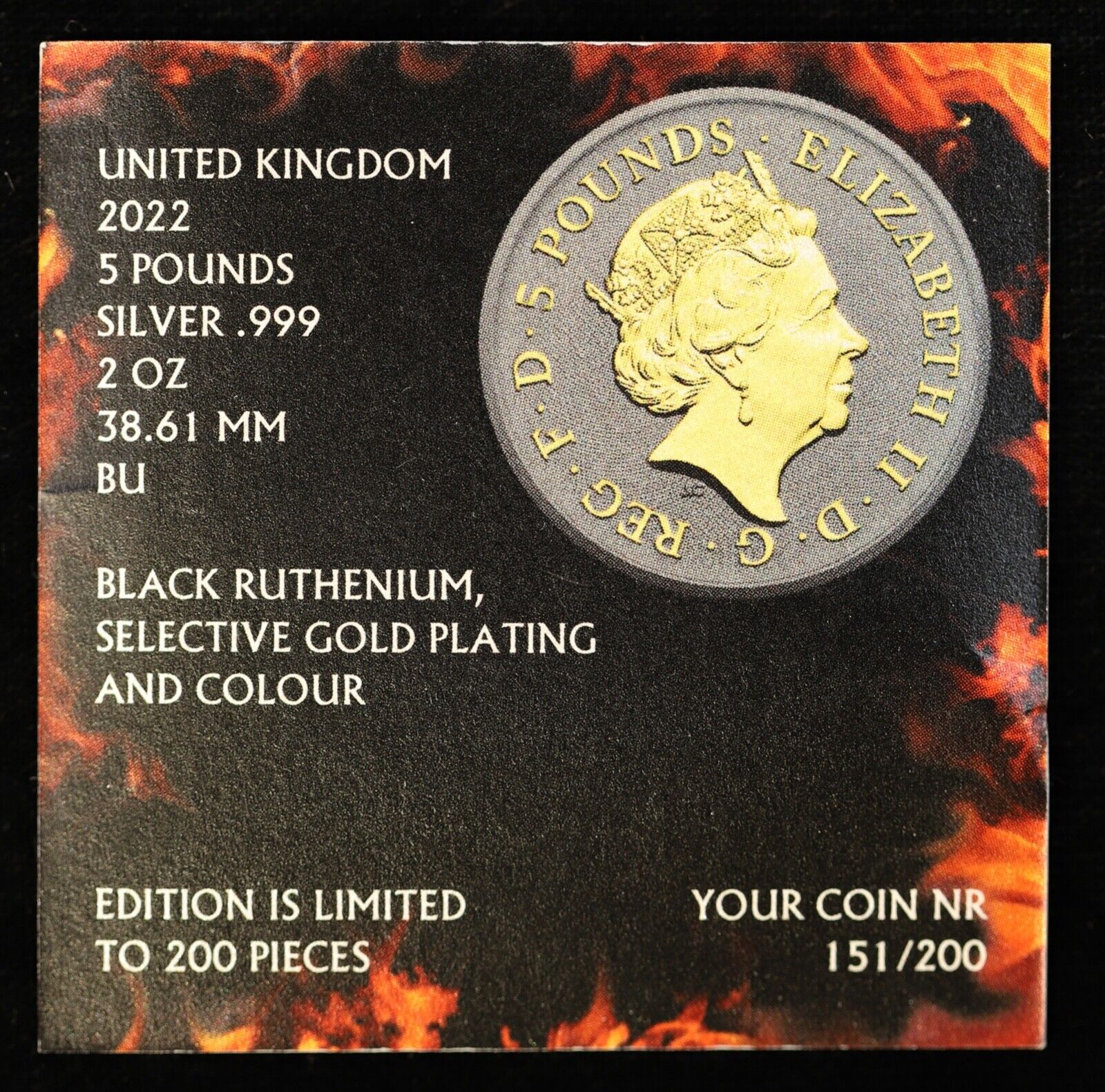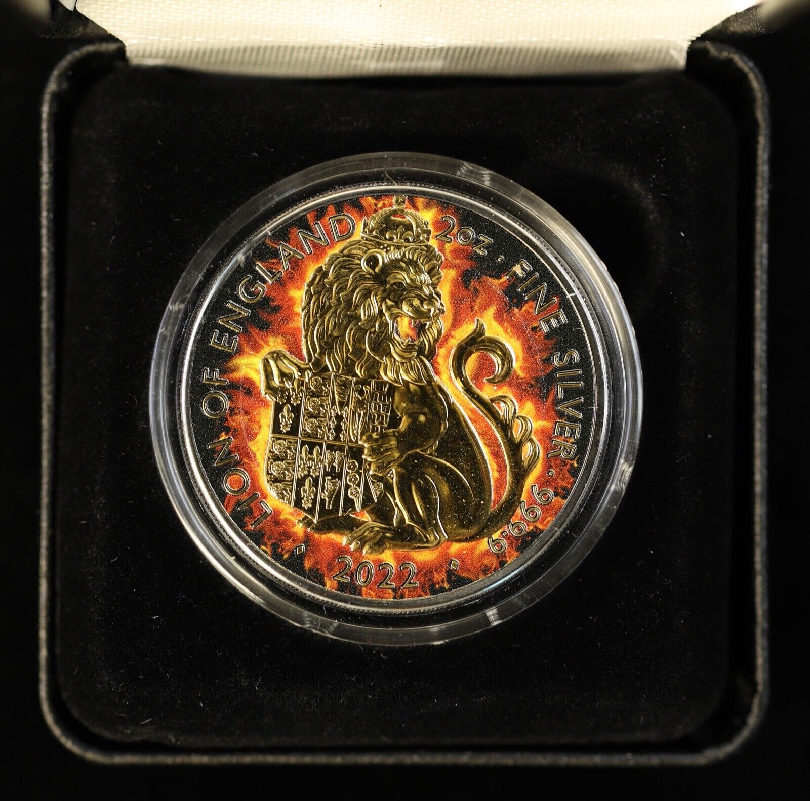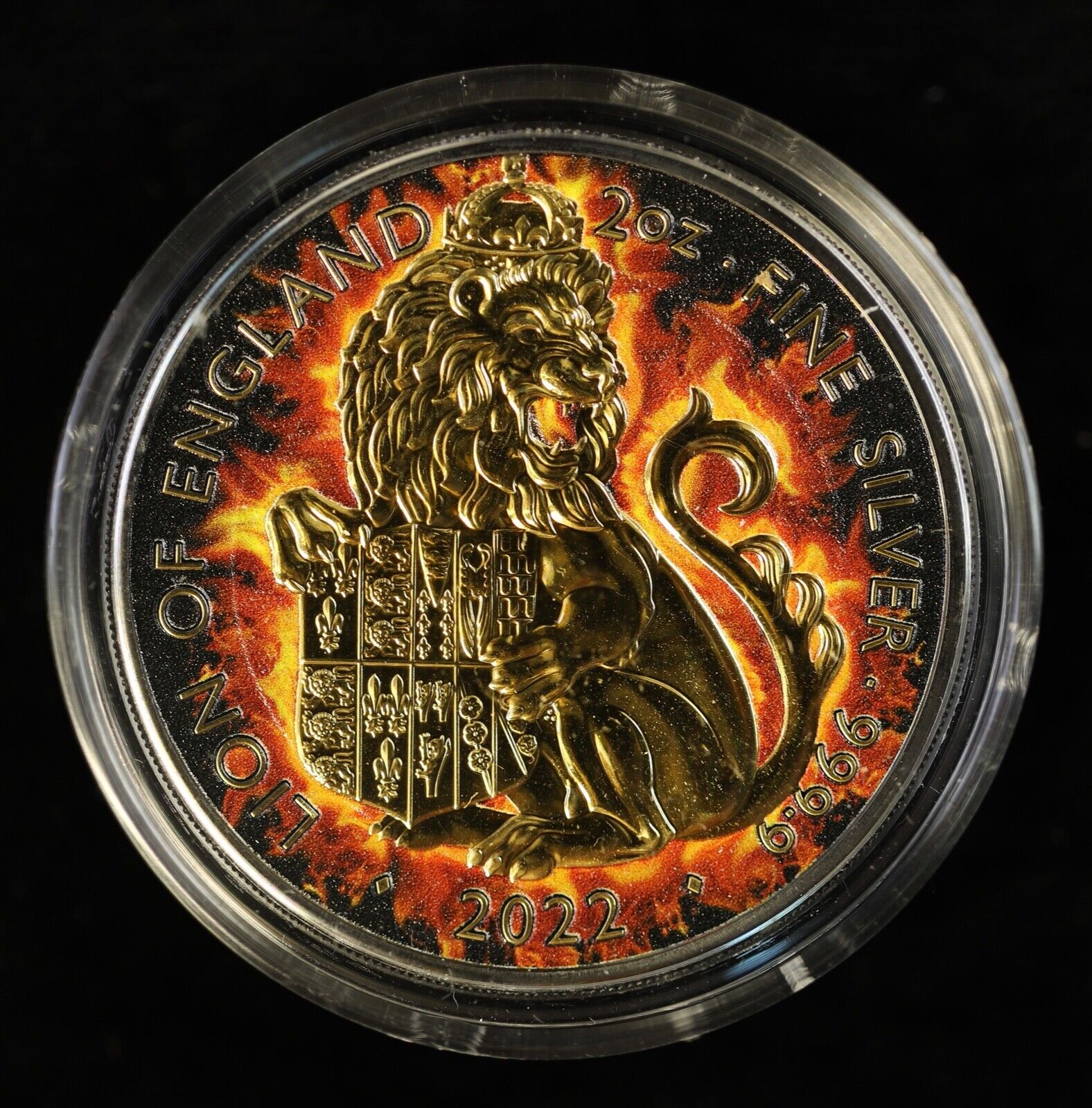 2022 Tudor Beasts Lion of England 2 oz Silver w/ Black Ruthenium Burning Lion