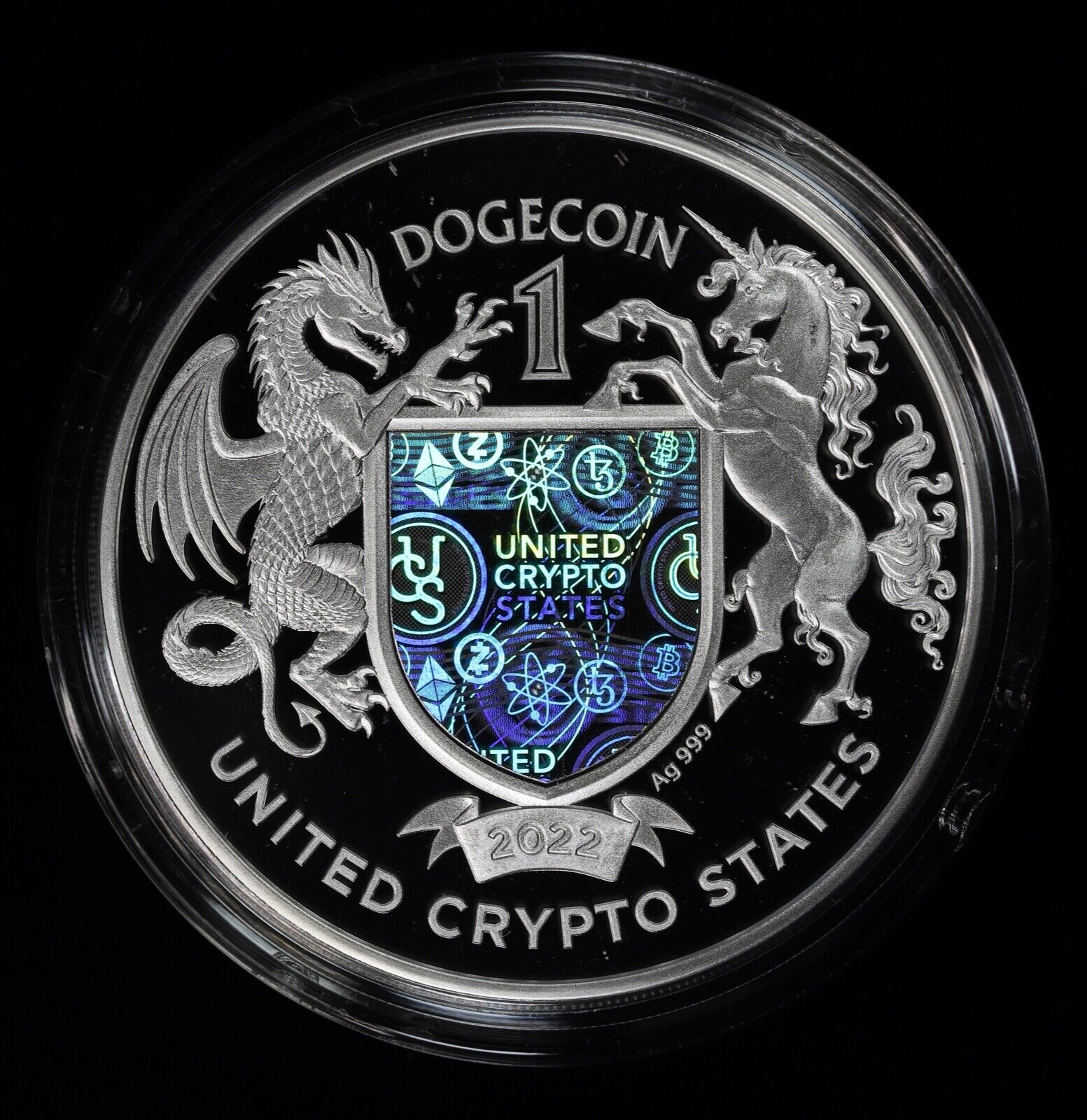 2022 United Crypto States Doge Coin 1 oz Silver Proof Coin Holographic in OGP