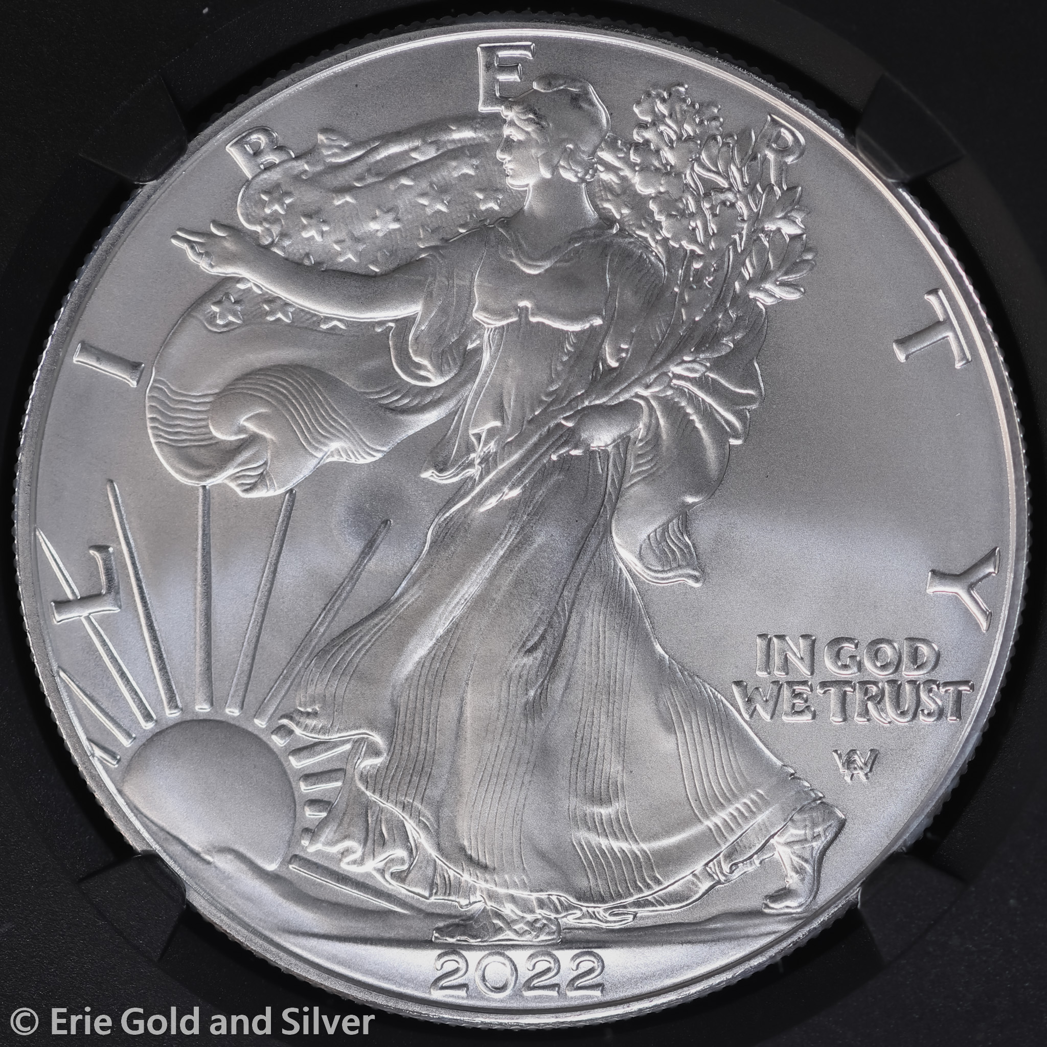 For sale is a 2022-W Burnished American Silver Eagle. Certified / graded by NGC at MS 70.