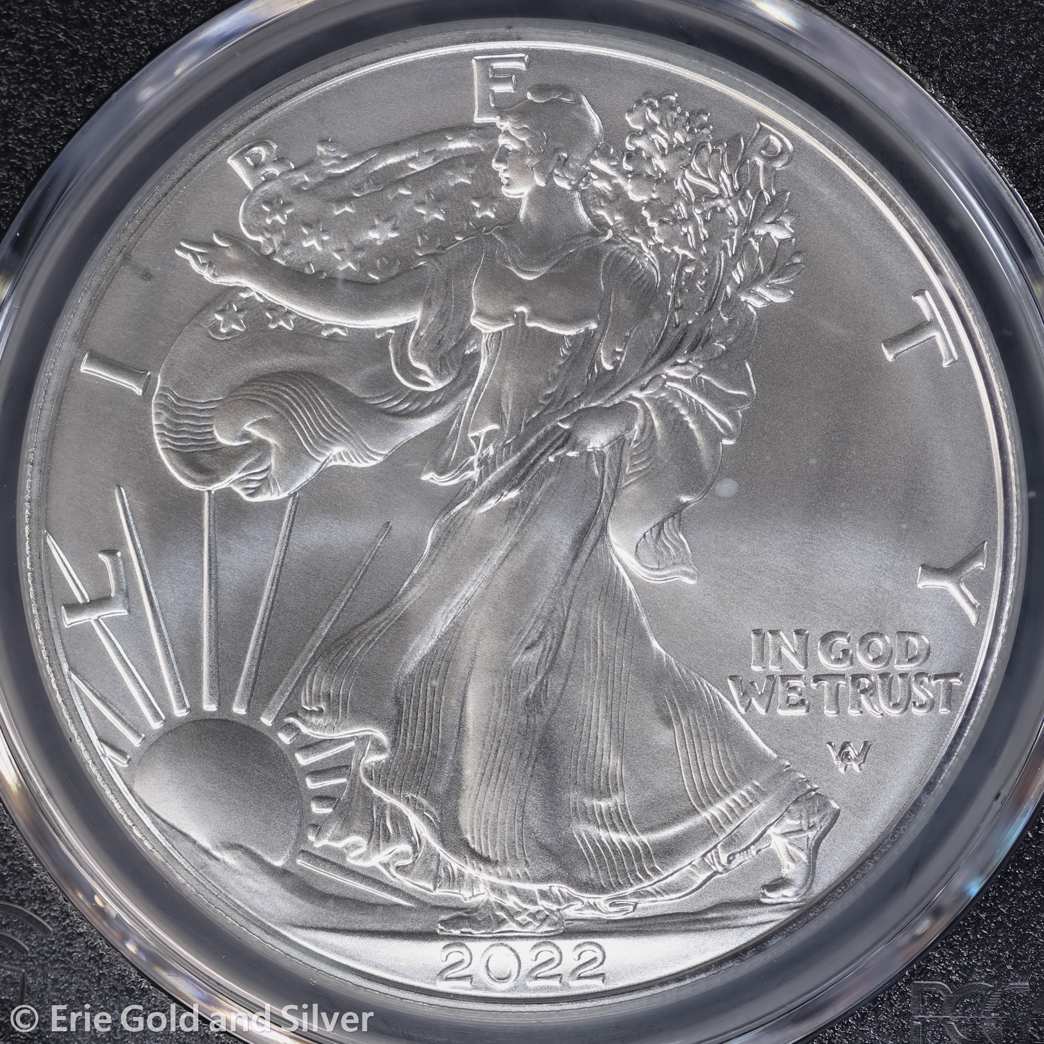 2022-W Burnished American Silver Eagle PCGS SP 70 | First Day of Issue, Emily Damstra Signed Slab