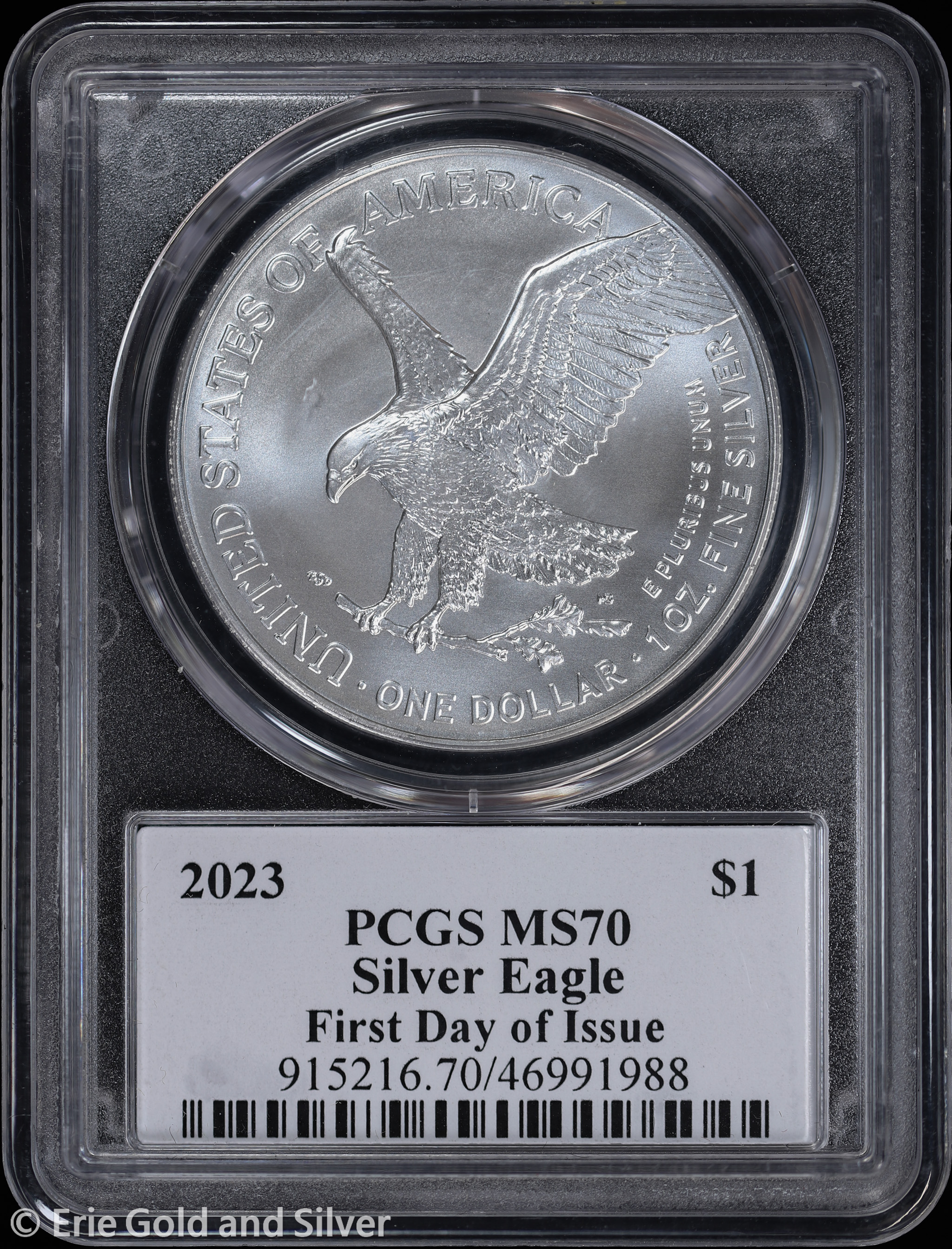 For sale is a 2023 American Silver Eagle. Certified / graded by PCGS at MS 70.